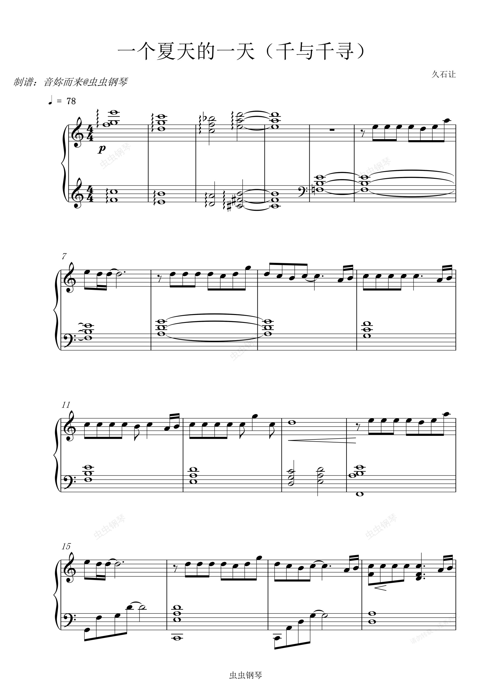 钢琴谱:One Summer's Day 一个夏天的一天(久石让)
