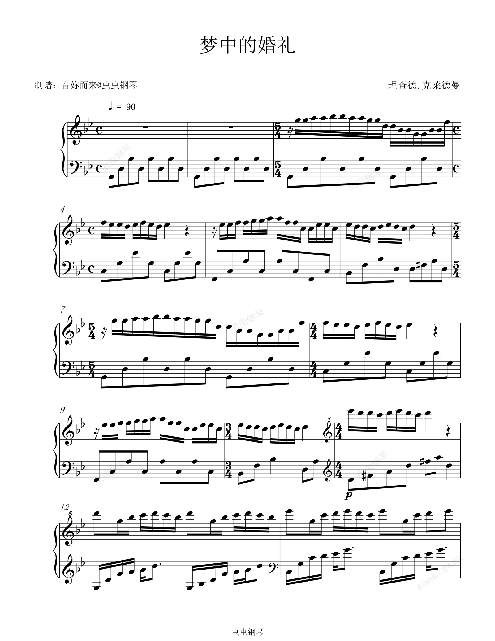 钢琴谱:梦中的婚礼(纯钢琴唯美版)