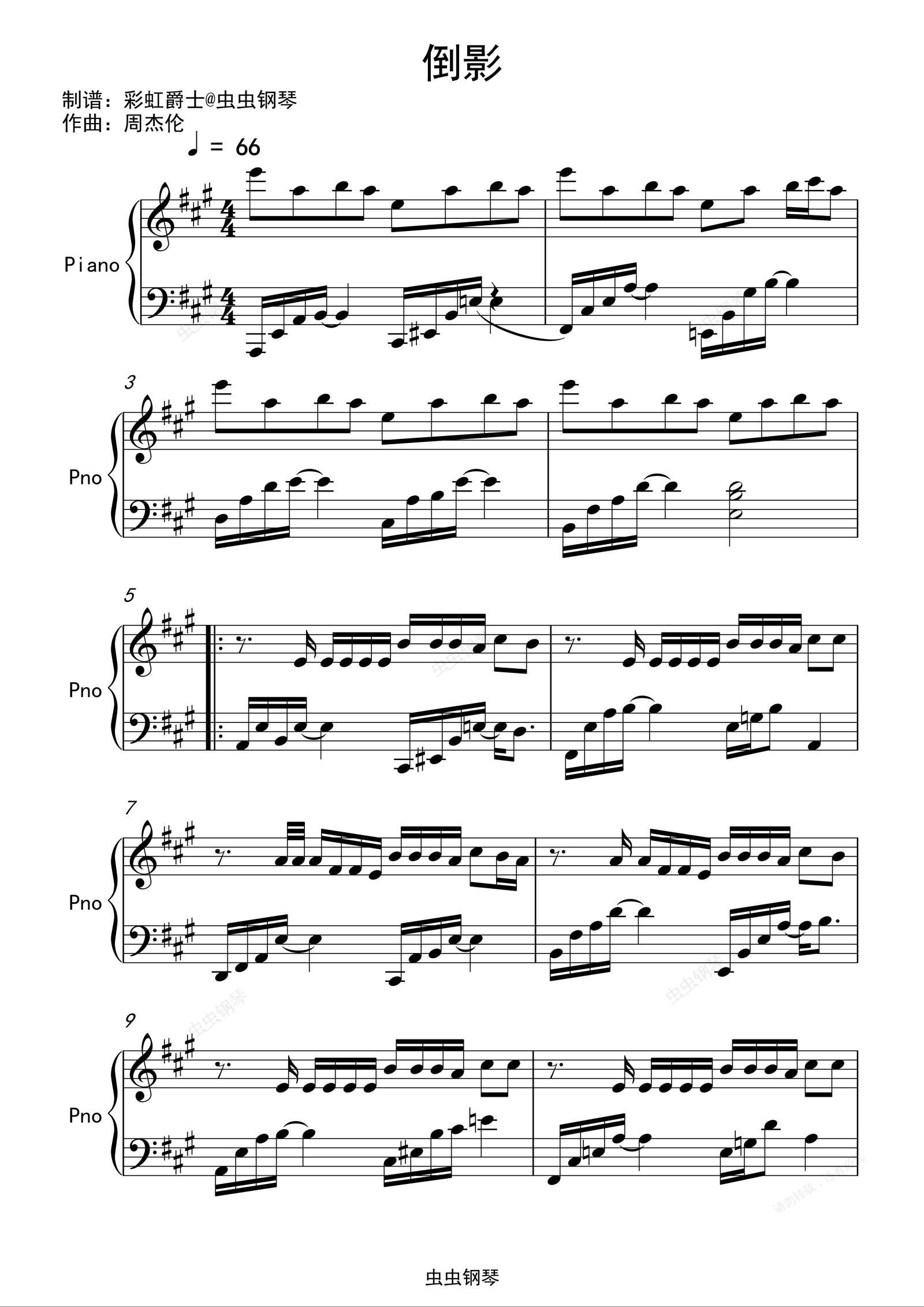 钢琴谱:倒影 周杰伦 完整版