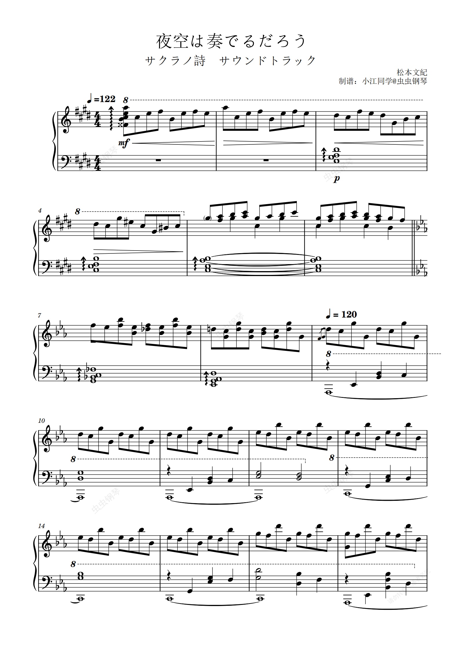 钢琴谱:夜空は奏でるだろう 松本文紀