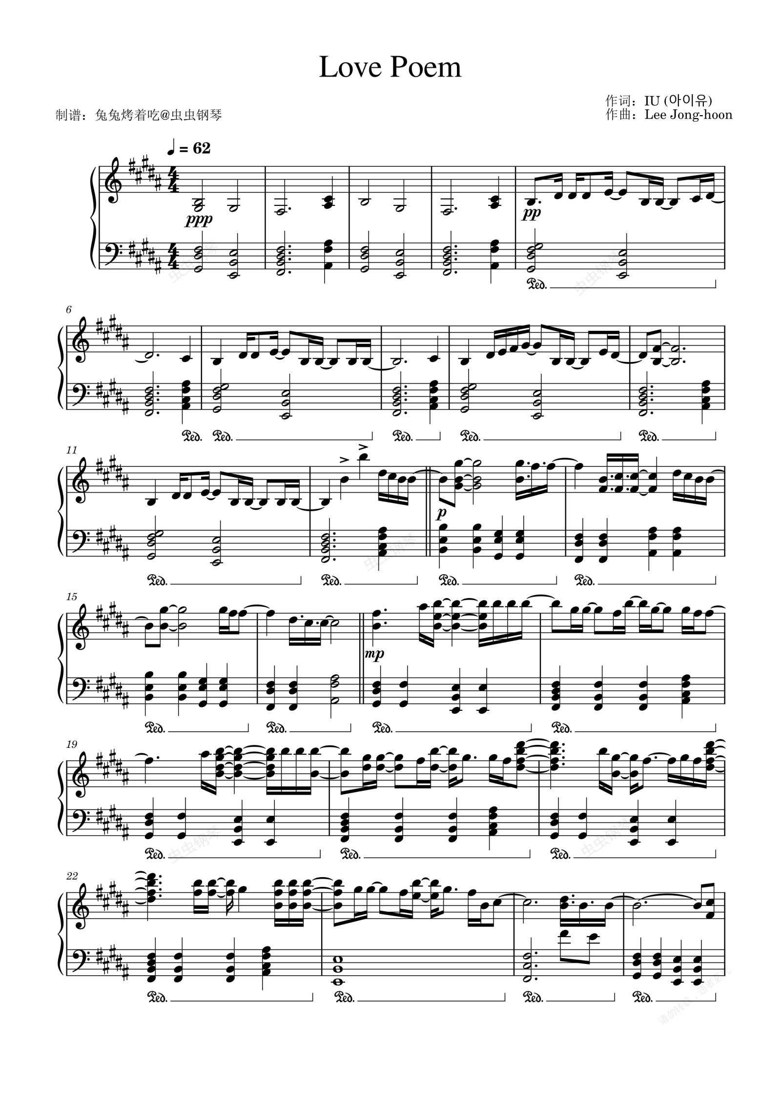 钢琴谱:《Love Poem》IU李知恩 原调钢琴独奏