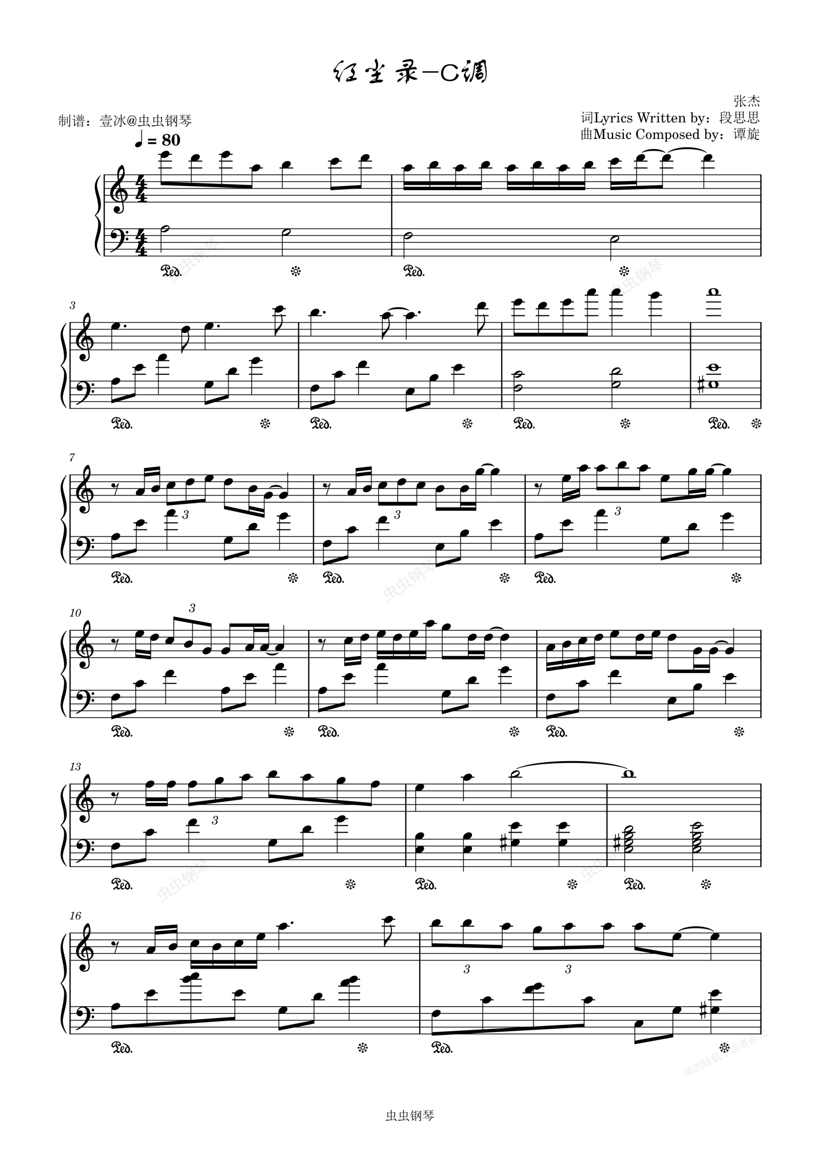 钢琴谱:红尘录//《沉香如屑》电视剧片头曲-C调版