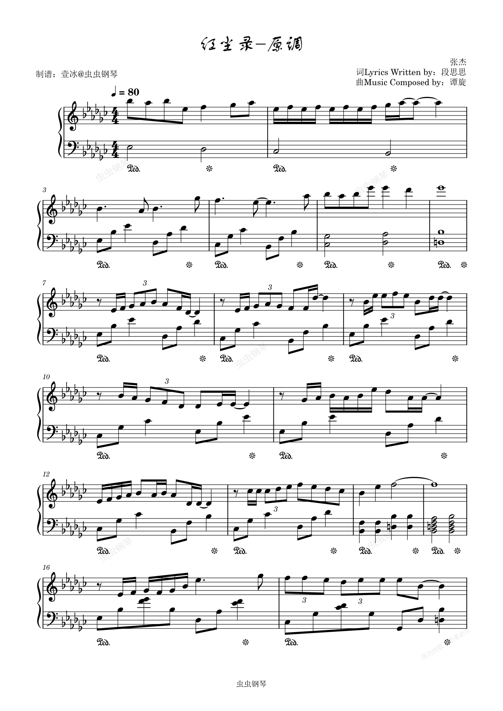 钢琴谱:红尘录//《沉香如屑》电视剧片头曲-原调版