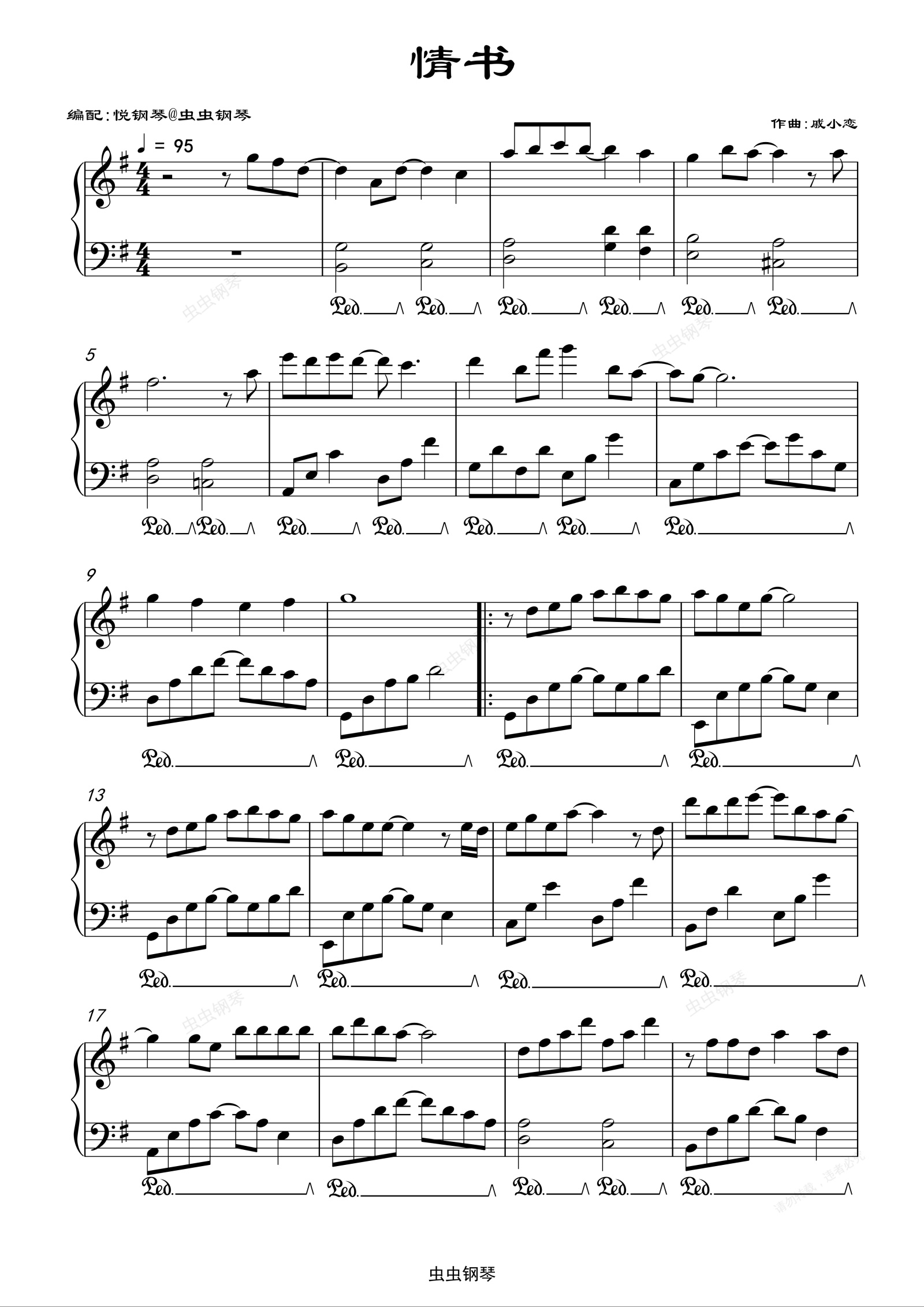 钢琴谱:情书- 经典老歌-张学友