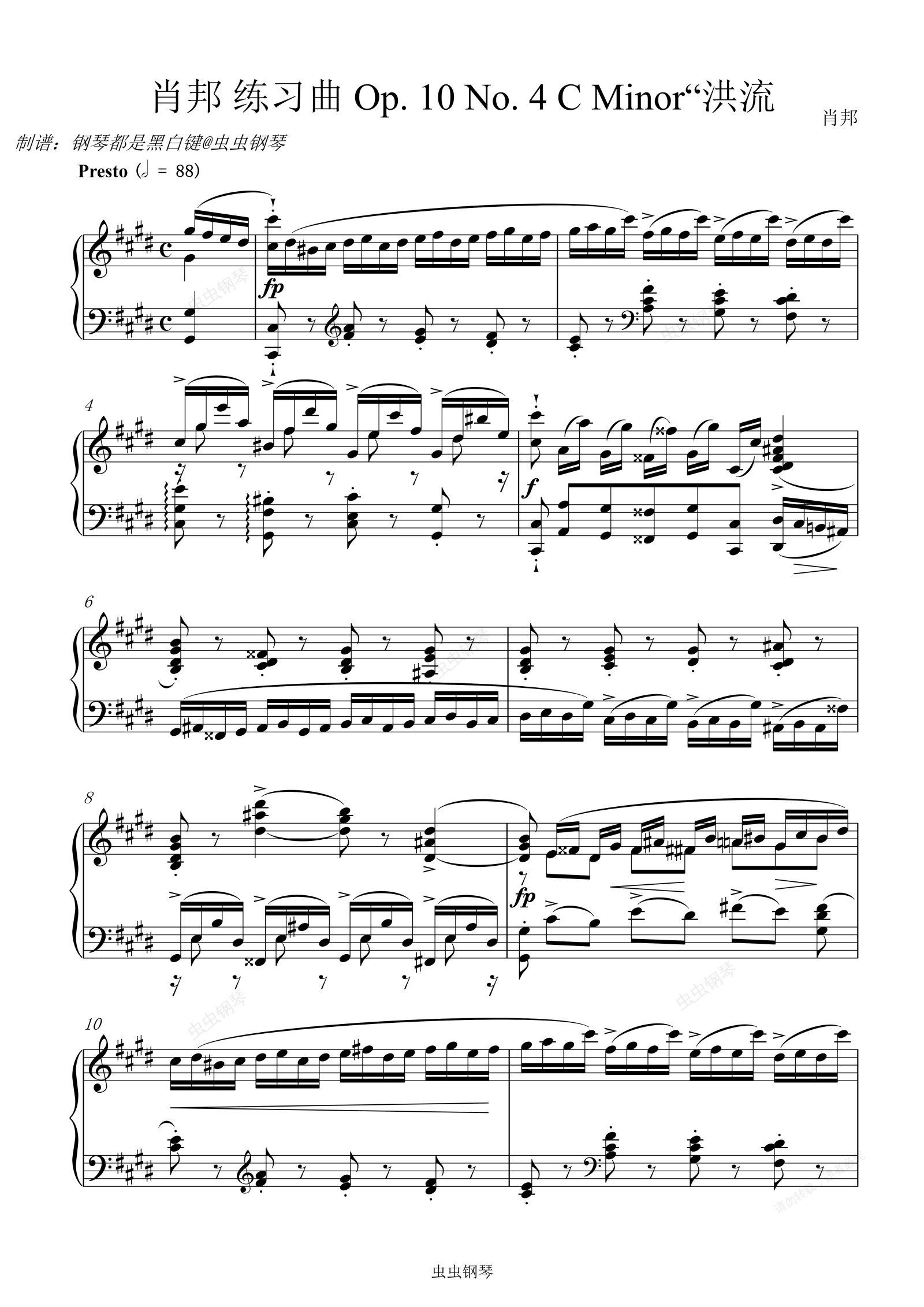 钢琴谱:肖邦 练习曲 Op 10 No 4 C Minor“洪流