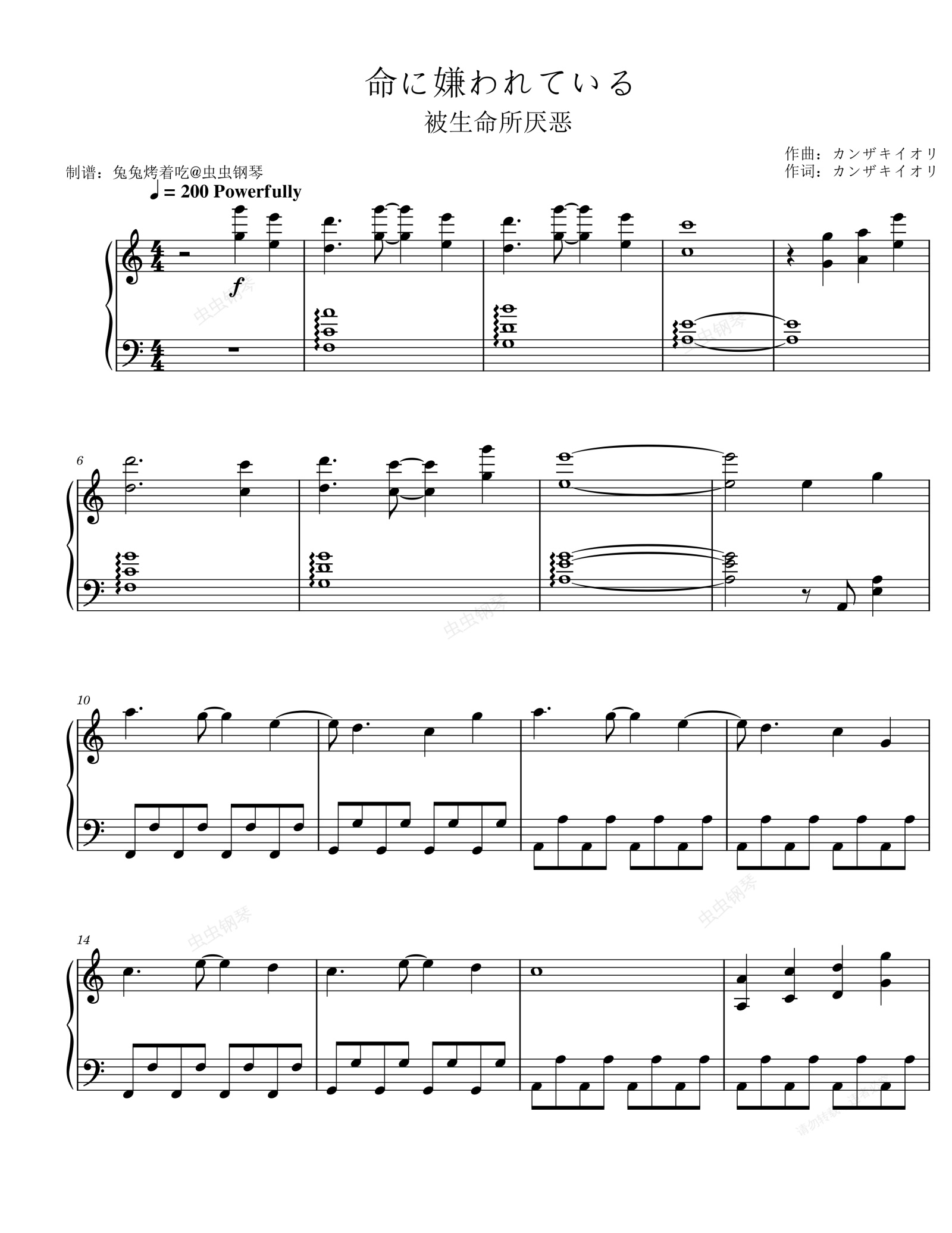 钢琴谱:《命に嫌われている》完美C调独奏