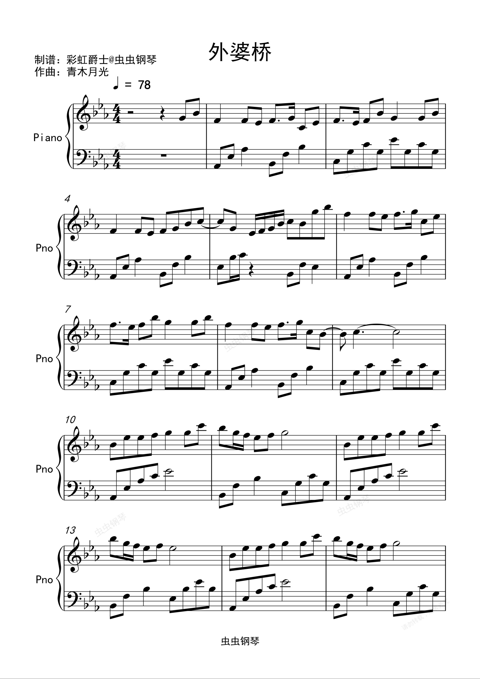 钢琴谱:外婆桥-简单版- 旺仔小乔
