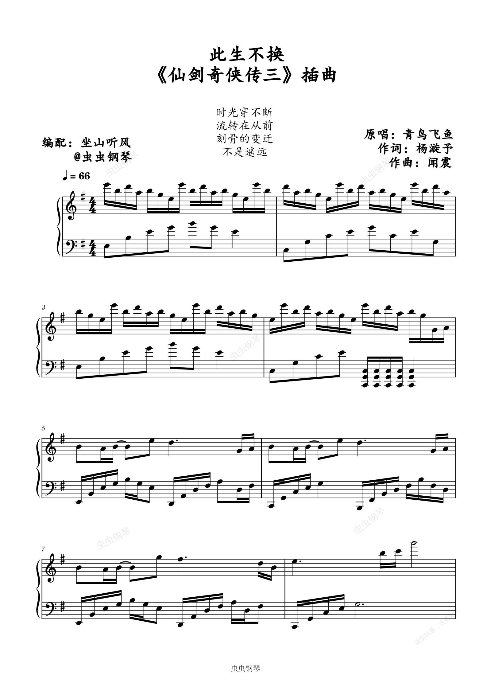 钢琴谱:此生不换——《仙剑奇侠传三》插曲