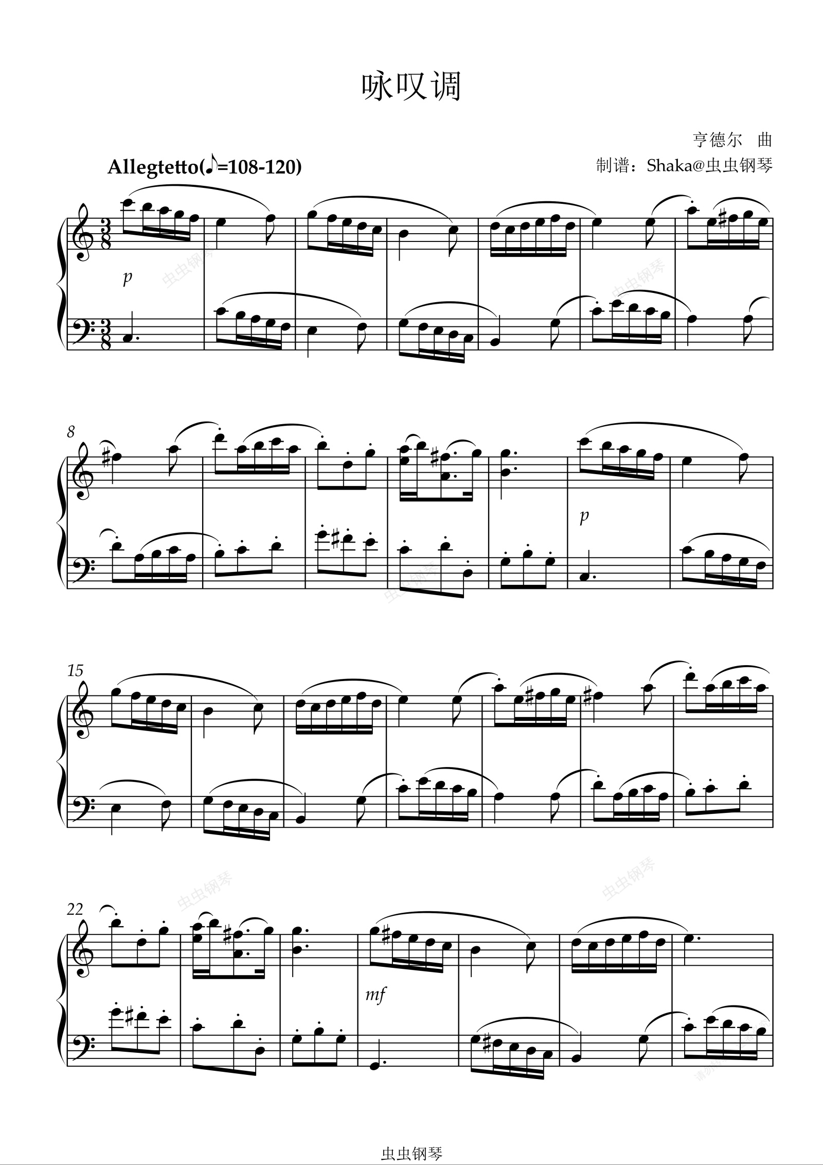 钢琴谱:咏叹调C调版 中国音乐学院3级B组考级曲目
