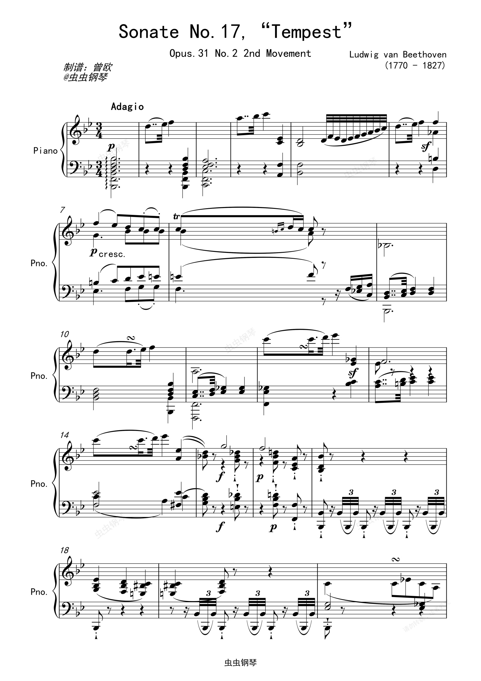 贝多芬在创作《暴风雨奏鸣曲》时,正是他听觉衰退、精神危机的时刻,他在几个月后写的“海里根士脱遗嘱”中说自己“六年以来我的身体何等恶劣……可是我不能对人说:‘大声些,我是聋子’……这感官在我是应该特别比别人优越……我不致自杀是因为艺术留住了我。在我尚未把我感到的使命全部完成之前,我觉得不能离开这个世界。”