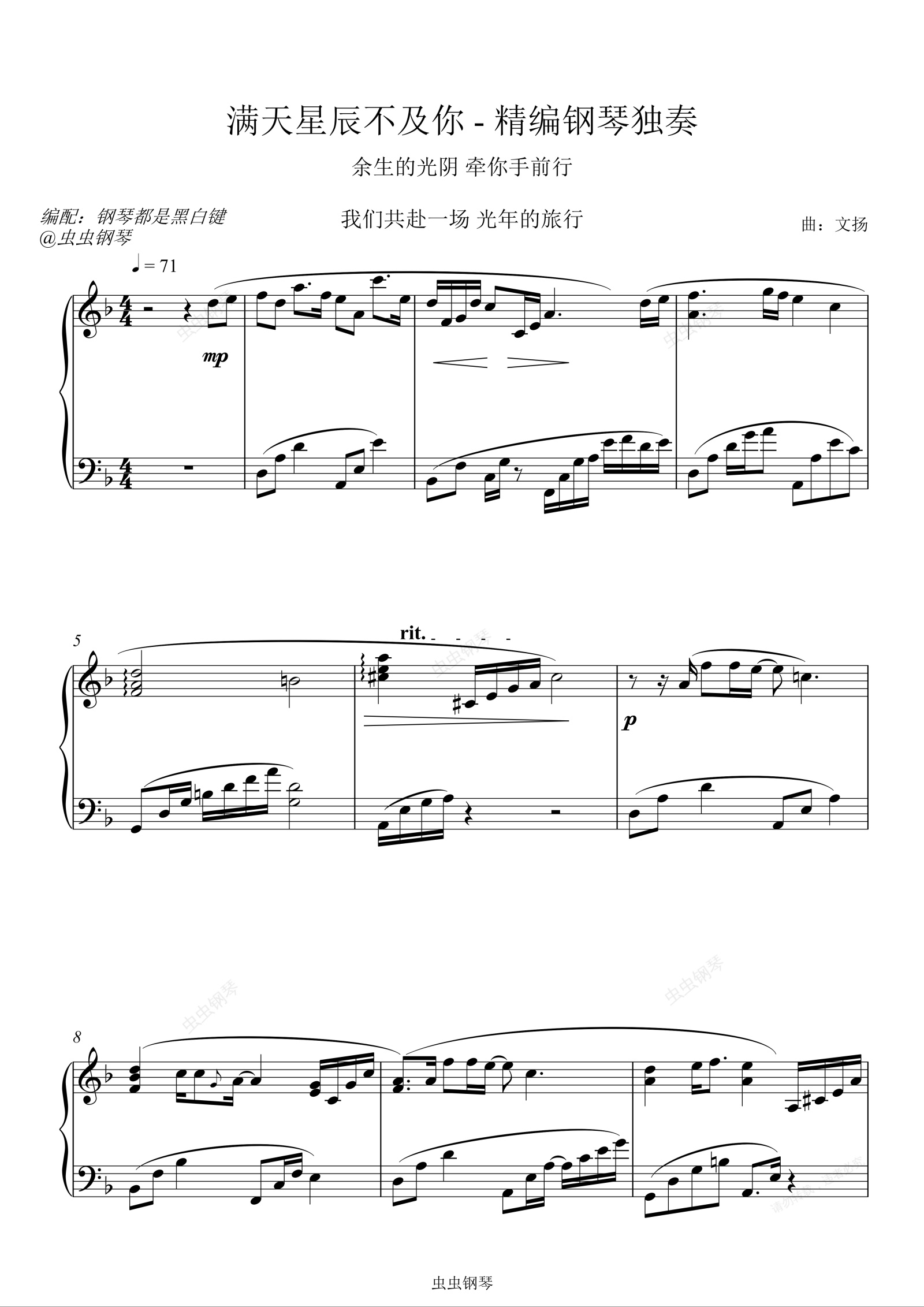 钢琴谱:满天星辰不及你 - [精编钢琴独奏]