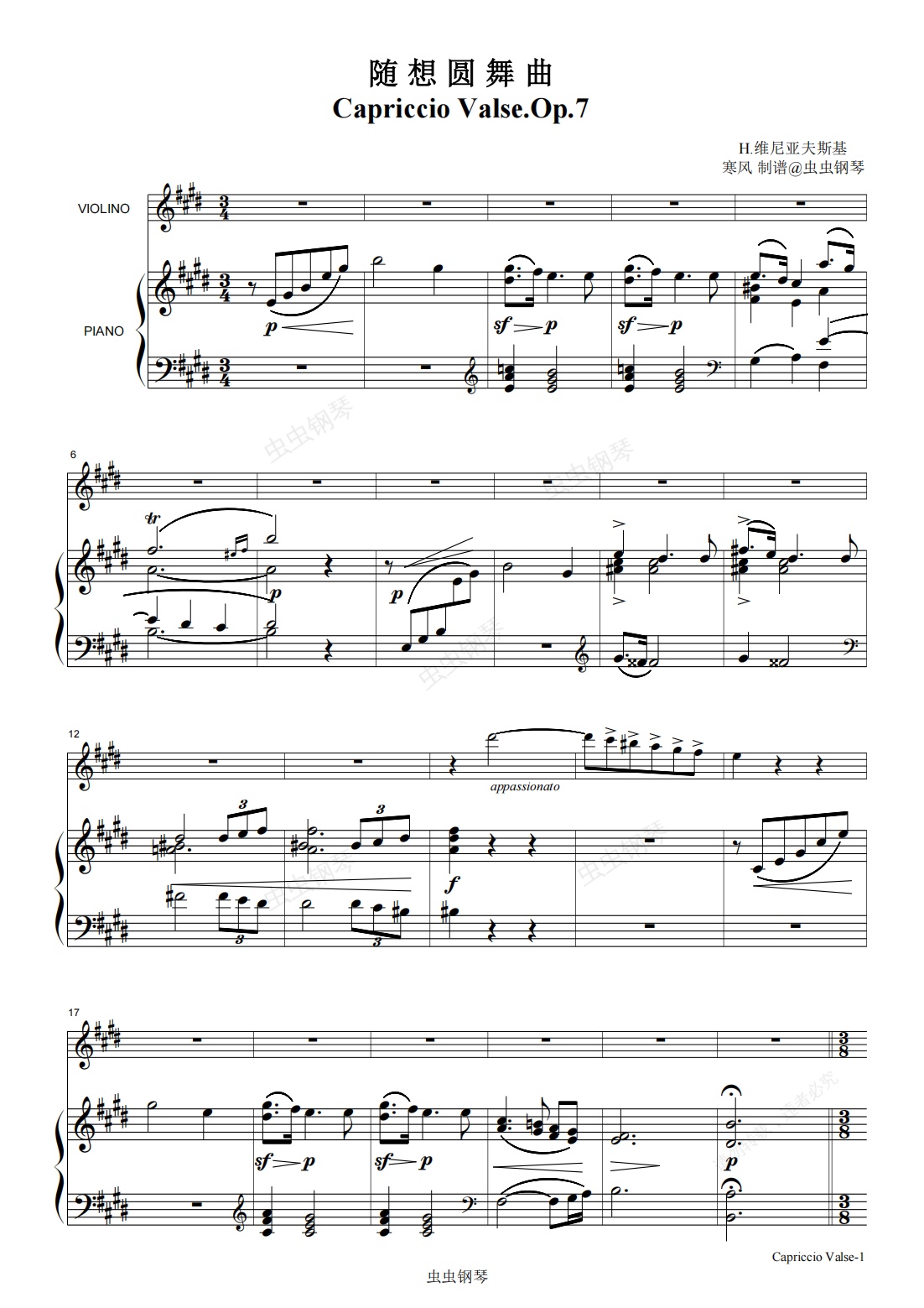 钢琴谱:随想圆舞曲(小提琴/钢琴)