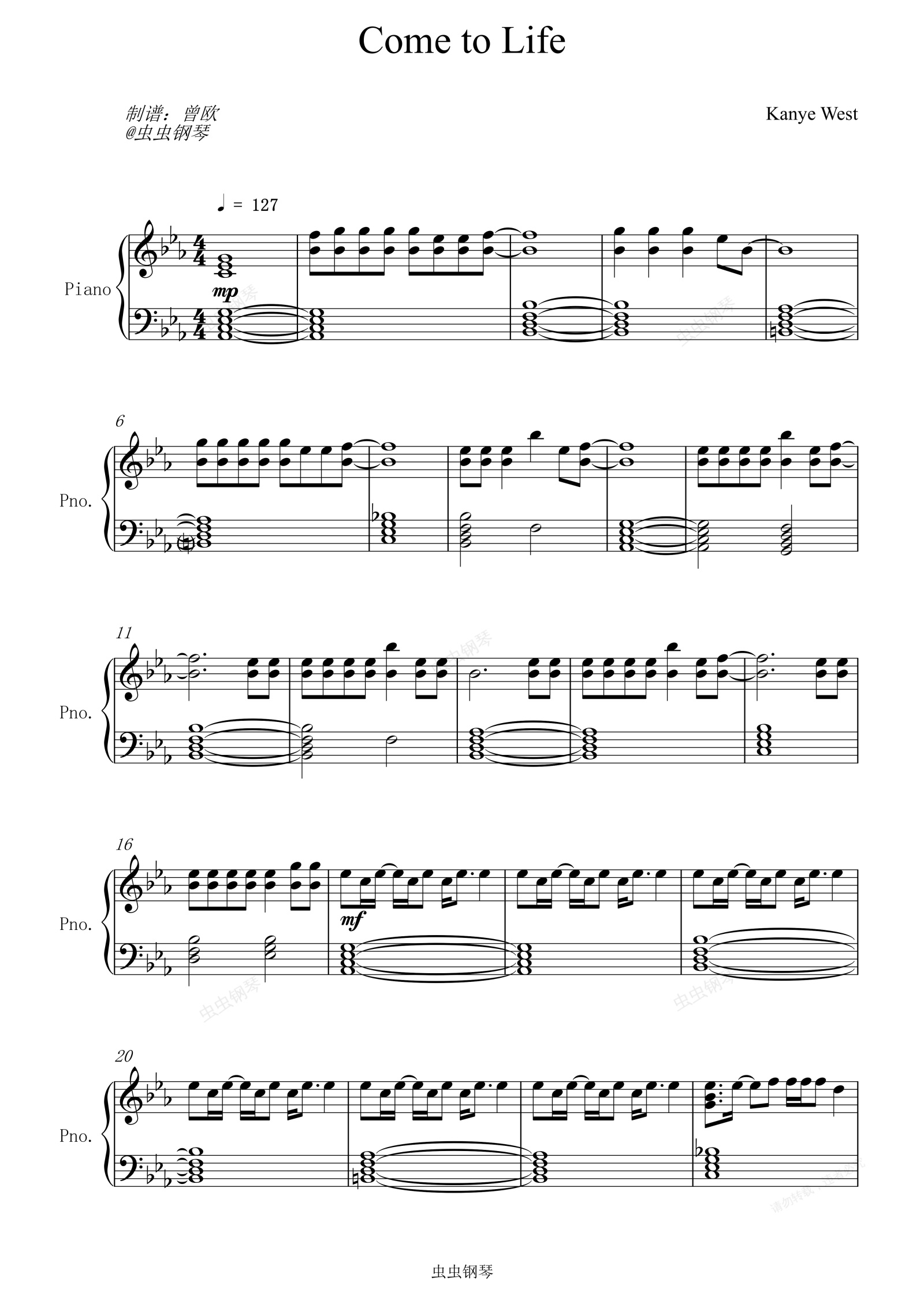 钢琴谱:Come To Life - Kanye West (原唱扒带+钢琴伴奏)