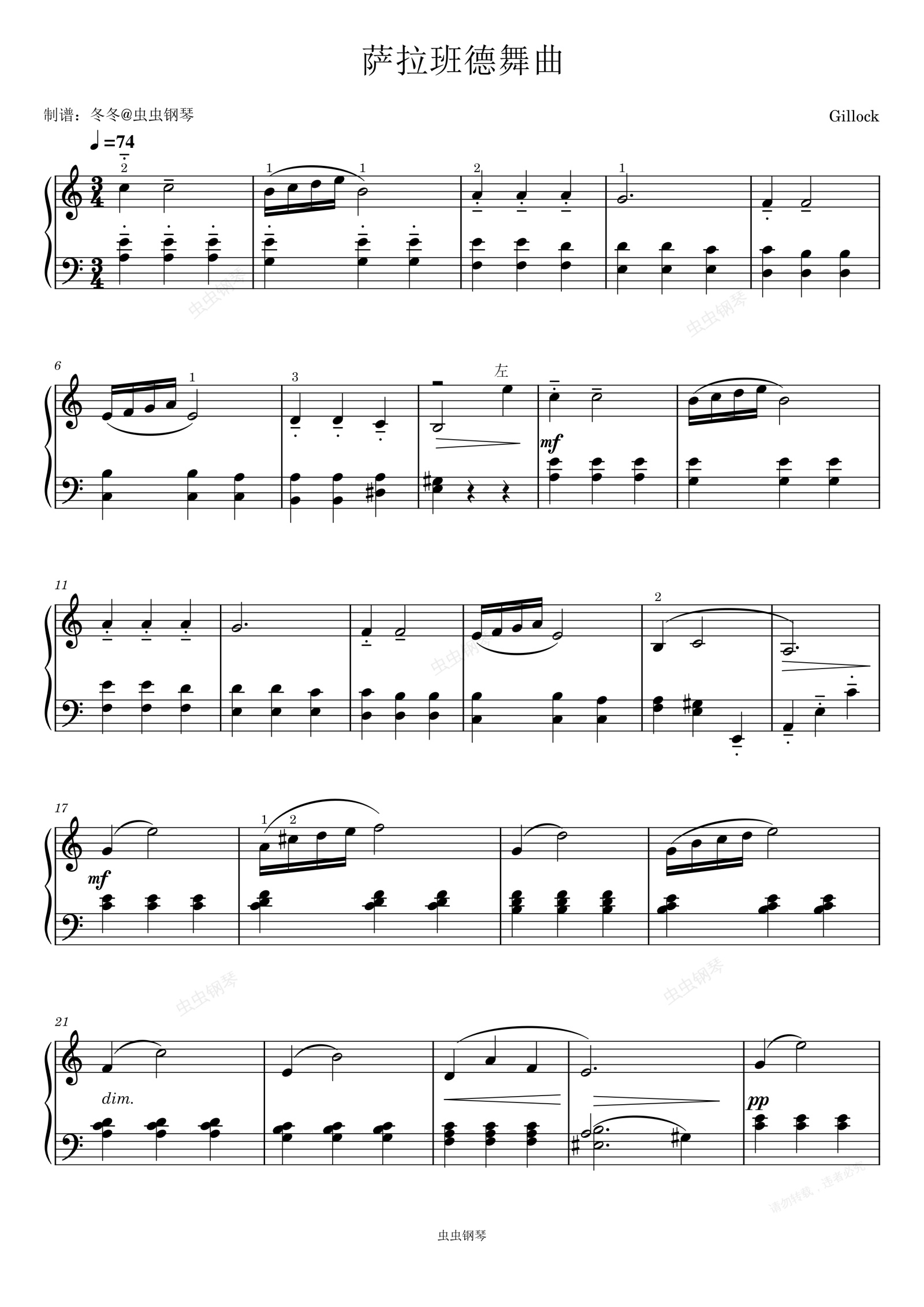 钢琴谱:萨拉班德舞曲-Gillock