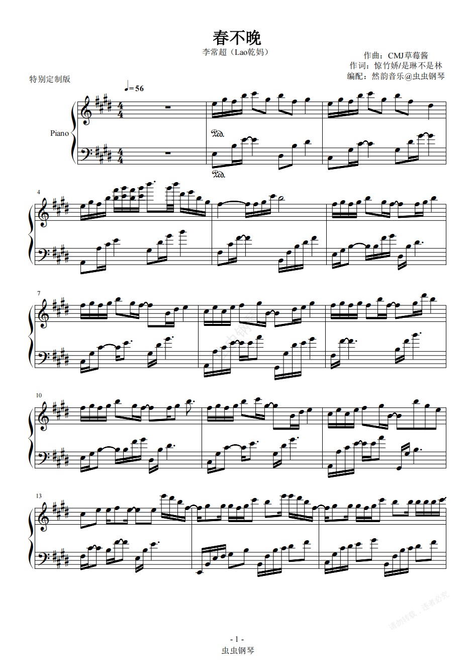 钢琴谱:【原调】春不晚-李常超(Lao乾妈)史诗级还原 然韵音乐编配