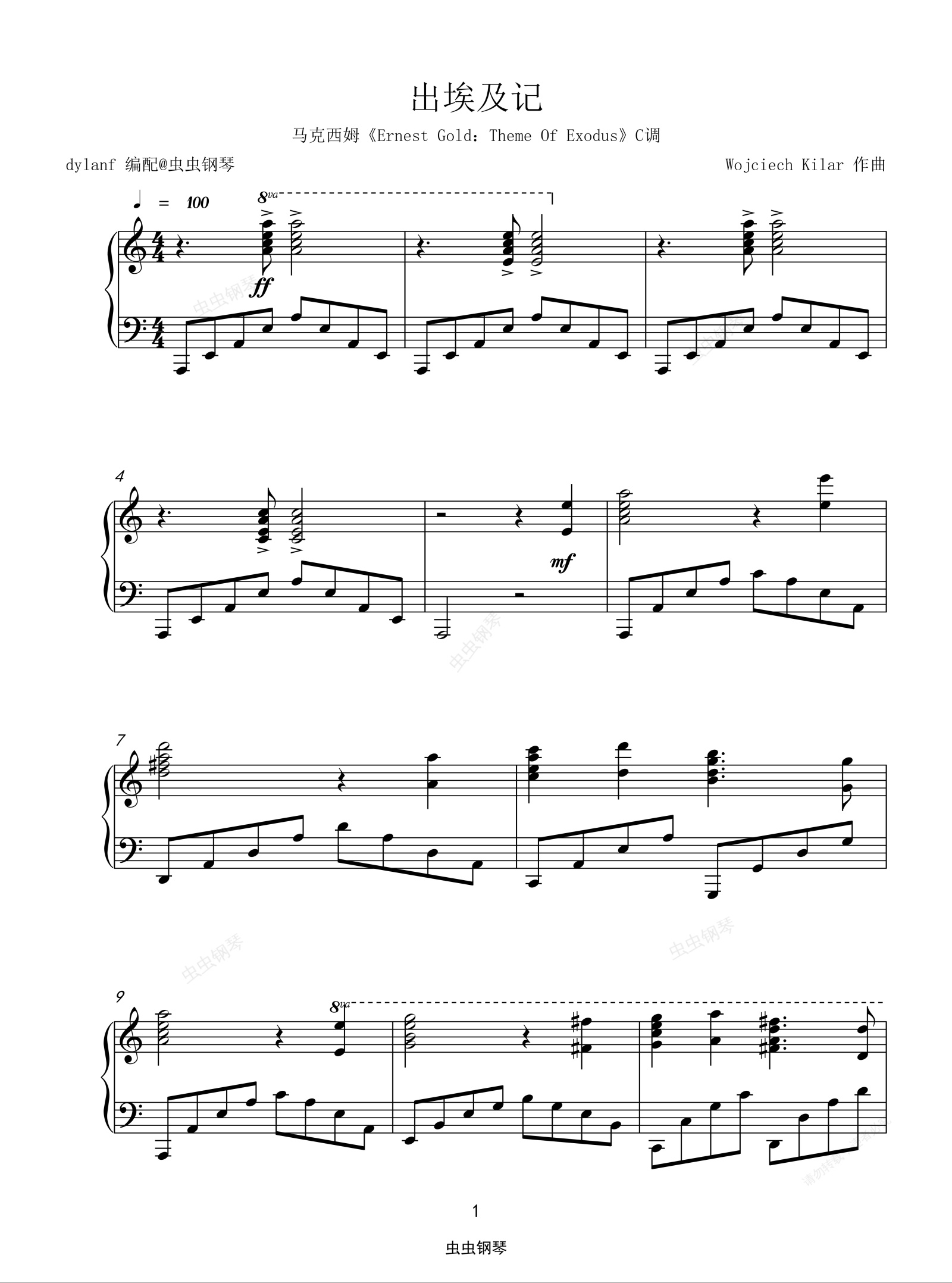 钢琴谱:C调易弹 出埃及记 好听演奏 Exodus 马克西姆Maksim