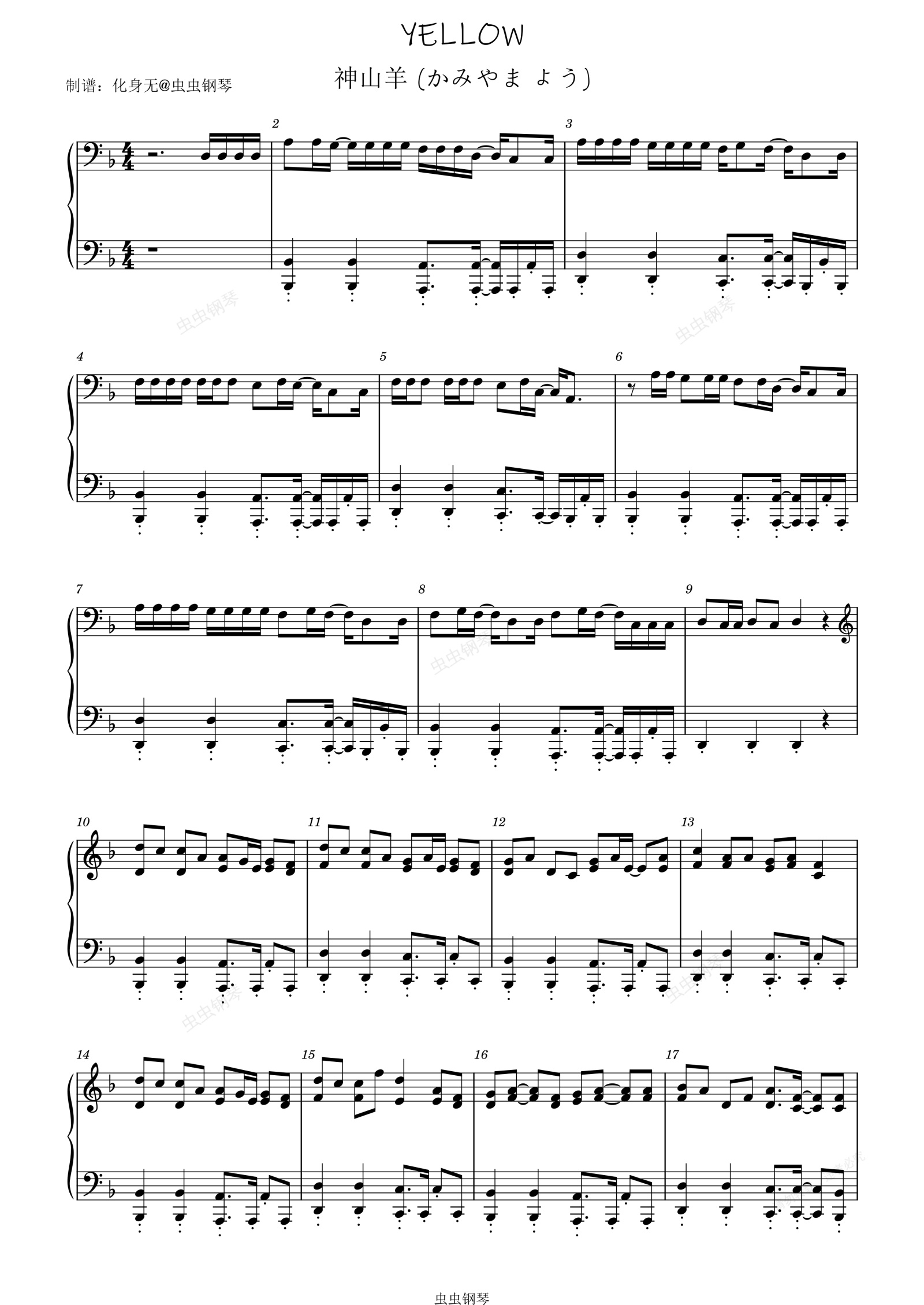 钢琴谱:YELLOW - 神山羊 原调独奏版