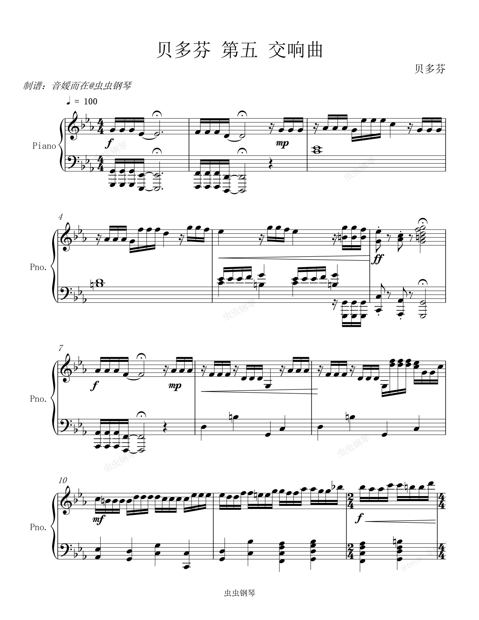 钢琴谱:贝多芬 第五 交响曲 【钢琴曲纯音乐】