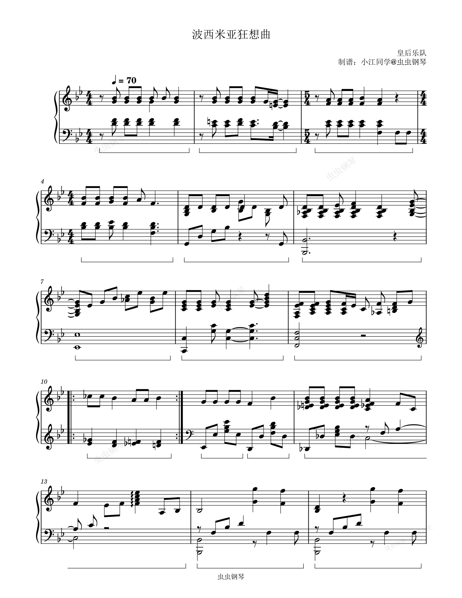 钢琴谱:波西米亚狂想曲 皇后乐队