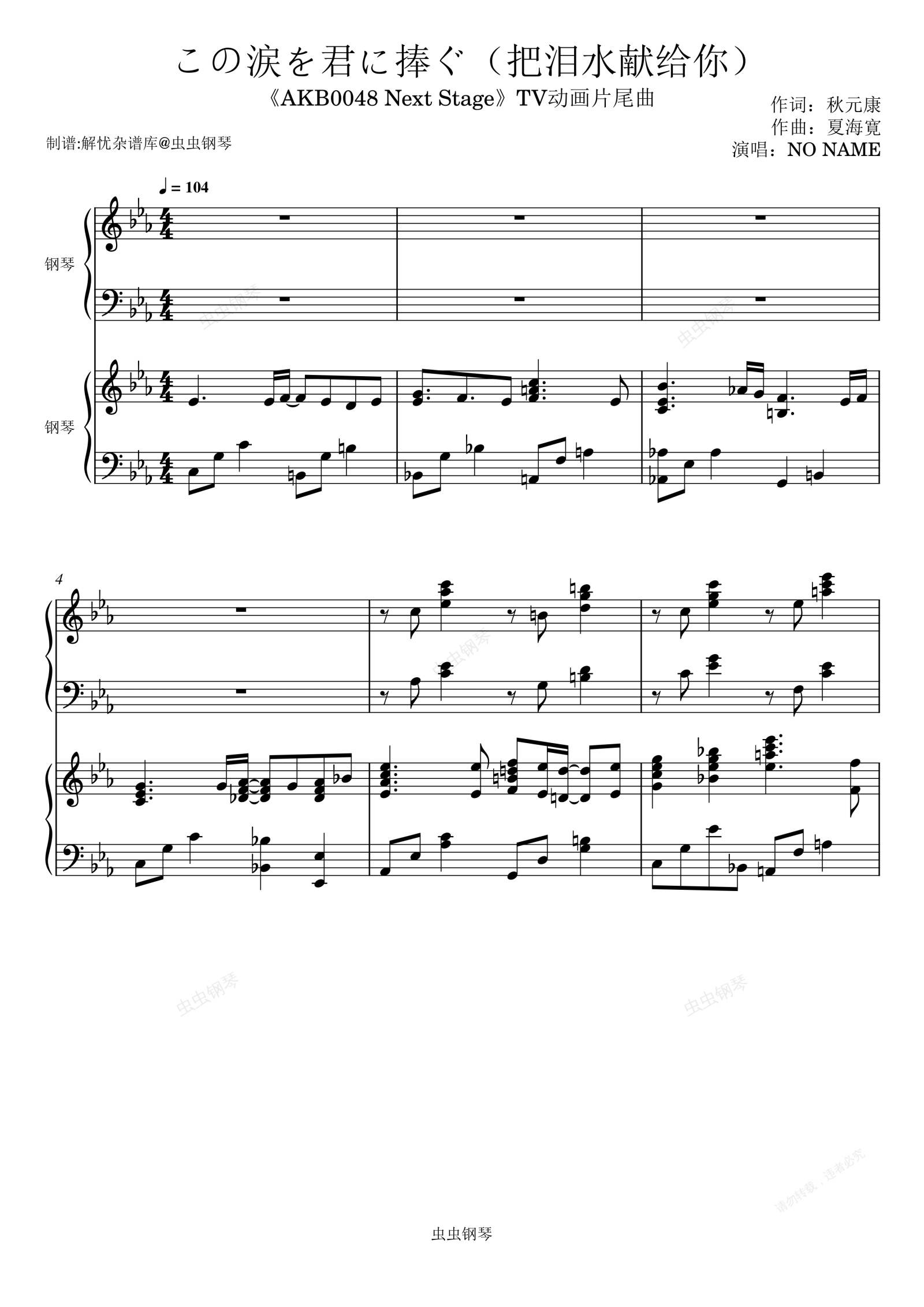 钢琴谱:この涙を君に捧ぐ《AKB0048 Next Stage》