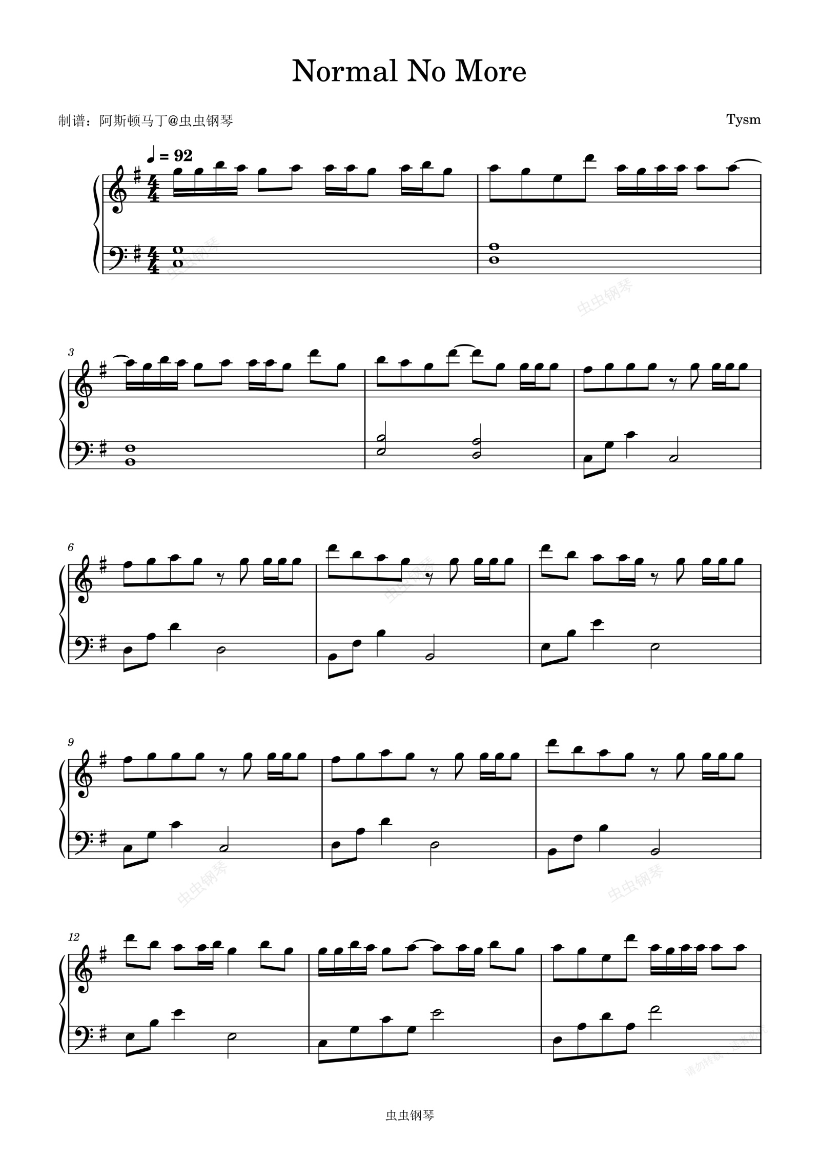 钢琴谱:Normal No More (Explicit) - Tysm
