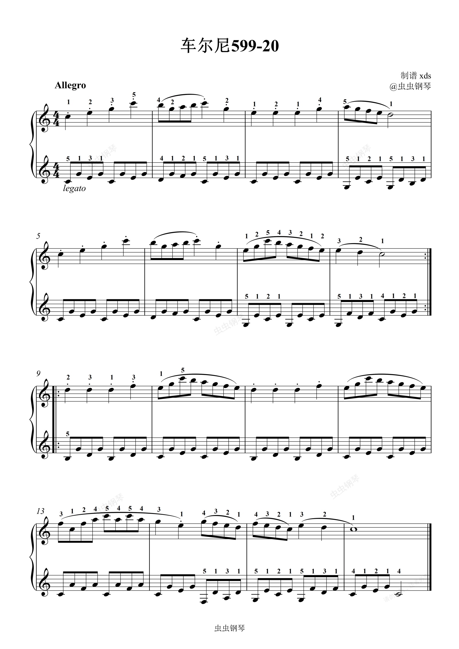 此曲右手旋律走向和第19首相比,许多地方有所简化。例如第1-5小节把原来的音阶变换为琶音;第9-11小节把原来的八个音变换为四个音;两个乐段的结尾把原来的五个音变换为三个音。弹奏时凡四分音符断奏皆按八分音符处理。右手要点:1. 1235” 指长琶音有三次连续扩指,注意掌握指距; 2. 大指移位练习中,特别注意掌第2~3,6~7小节之间与第10、12 小节开头的“521” 或“125” 惯用短琶音指法;3.强化 4指练习,第13小节是一个难点,强调手指自身动作,注意连续扩指。左手阿尔贝蒂低音伴奏一直圆滑到底。