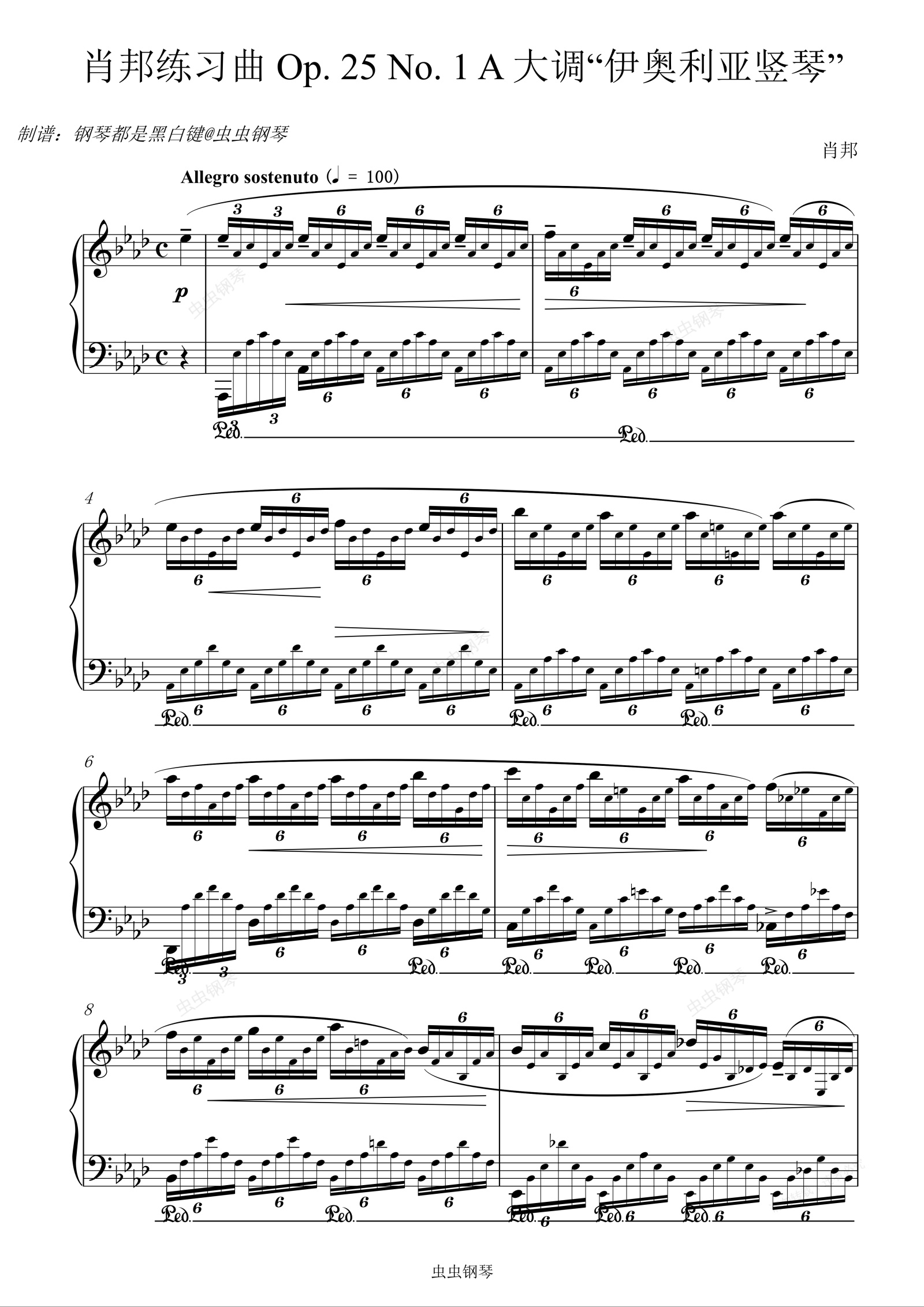 钢琴谱:肖邦练习曲 Op 25 No 1 A 大调“伊奥利亚竖琴”