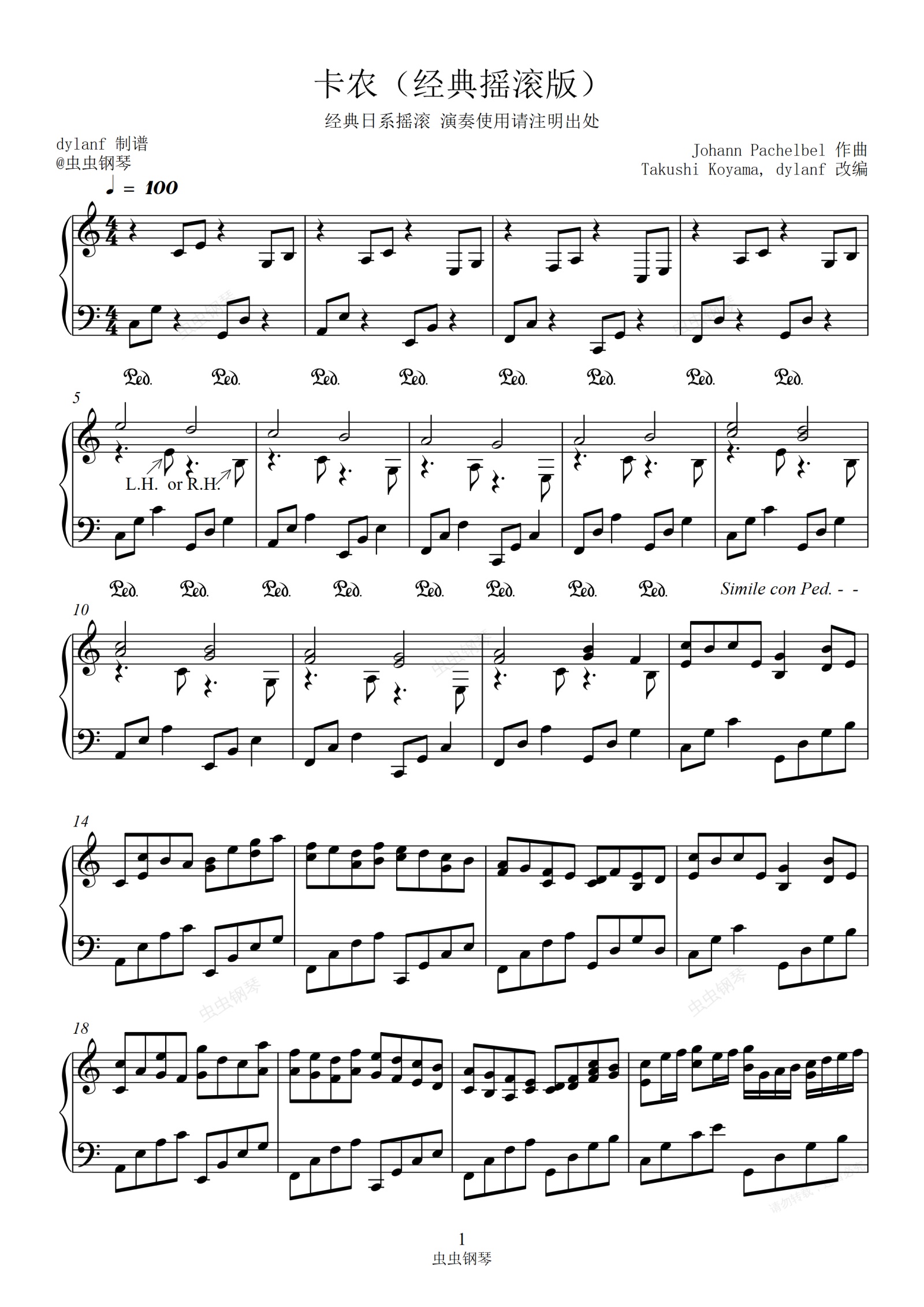 钢琴谱:卡农(经典摇滚版)dylanf日系摇滚疯狂经典