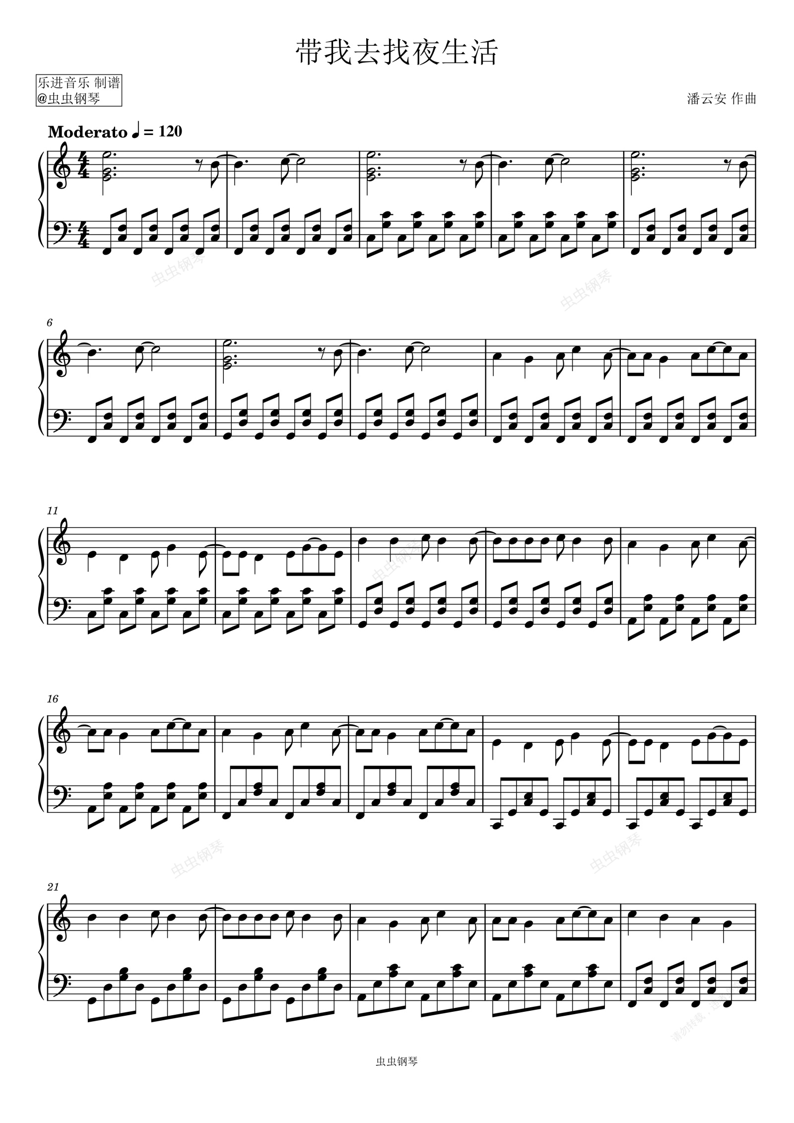 钢琴谱:带我去找夜生活 C调无升降号