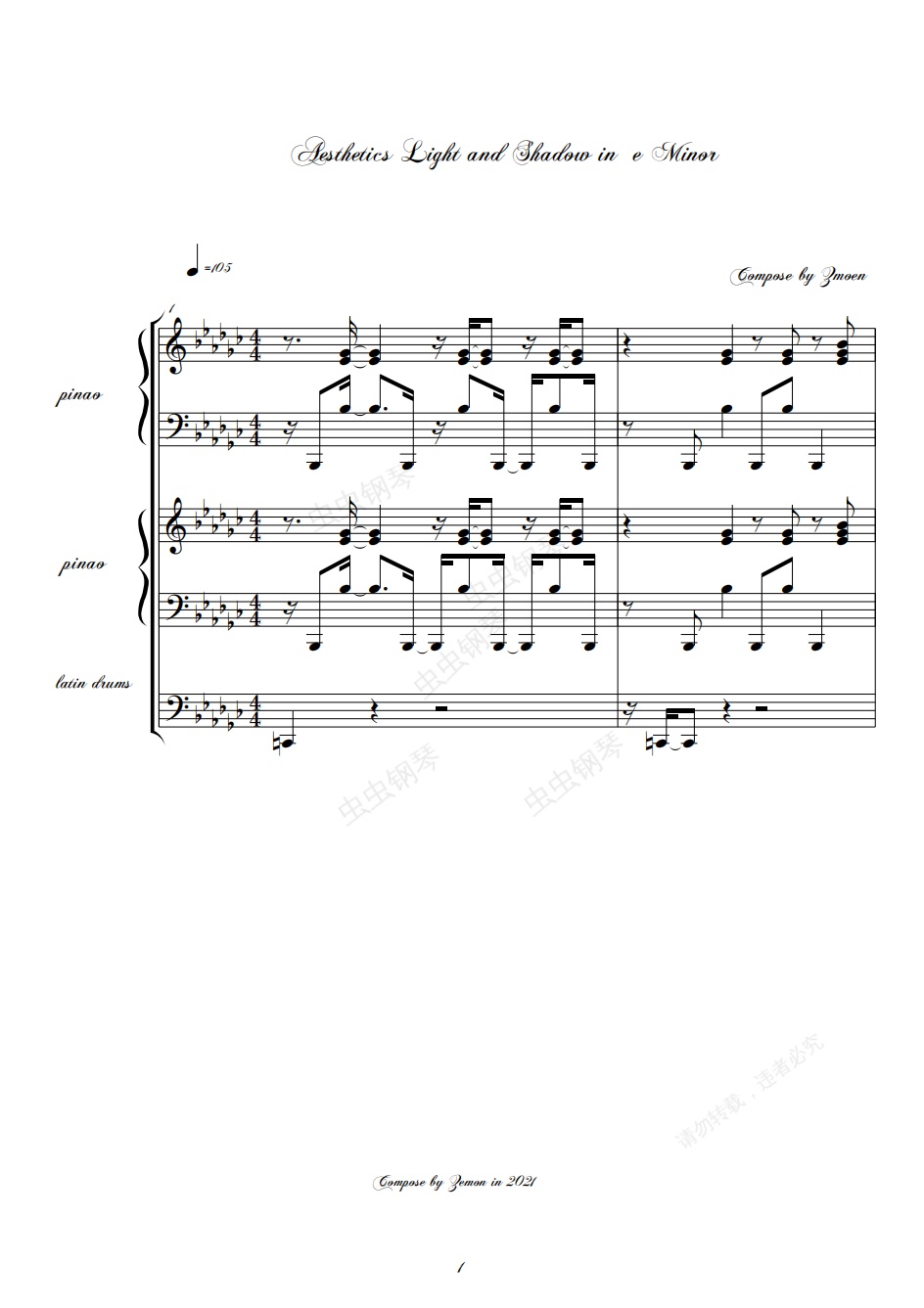 钢琴谱:Aesthetics Light and shadow in e Minor