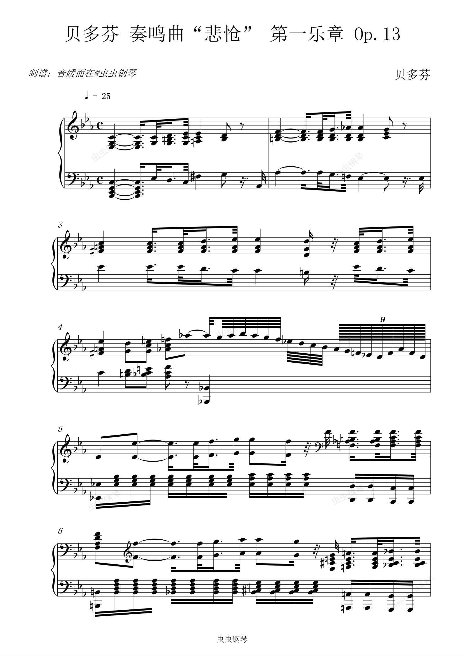 钢琴谱:贝多芬 奏鸣曲“悲怆” 第一乐章 Op.13