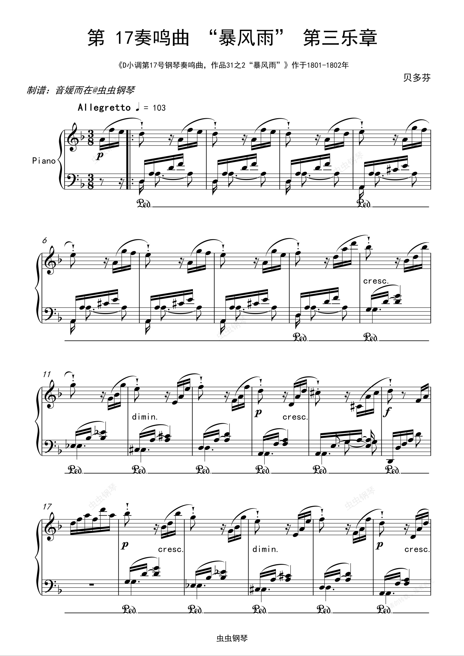 钢琴谱:贝多芬 第 17奏鸣曲“暴风雨” 第三乐章