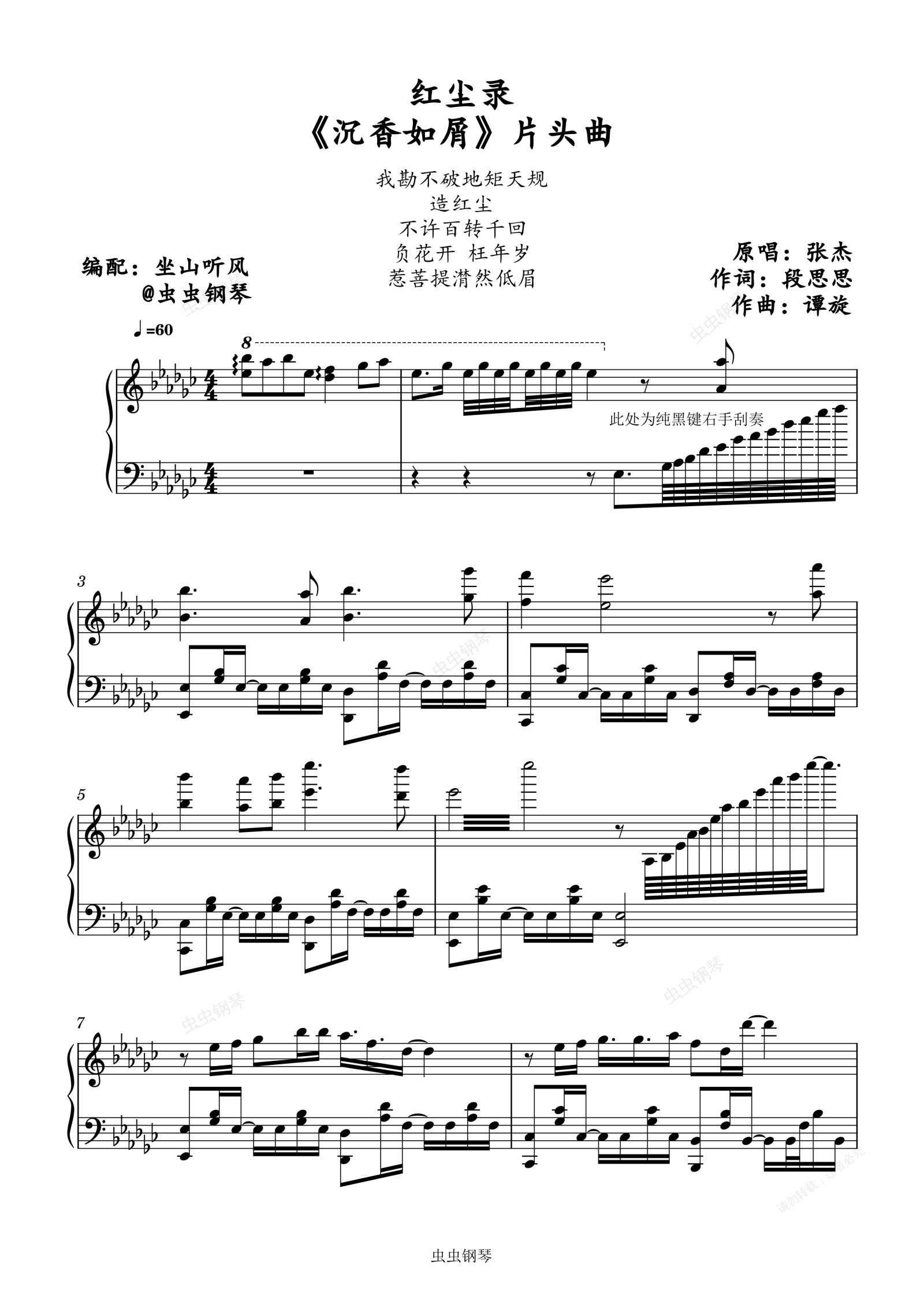 钢琴谱:红尘录——《沉香如屑》片头曲