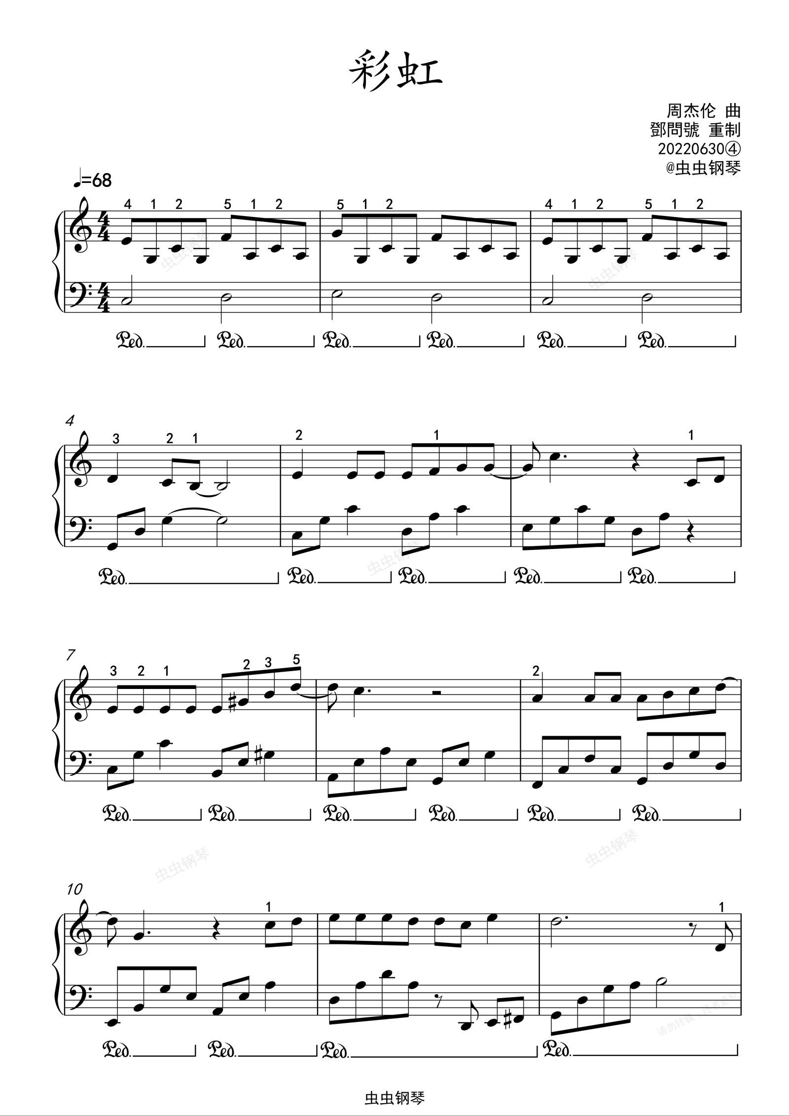 钢琴谱:《彩虹》C大调精简版