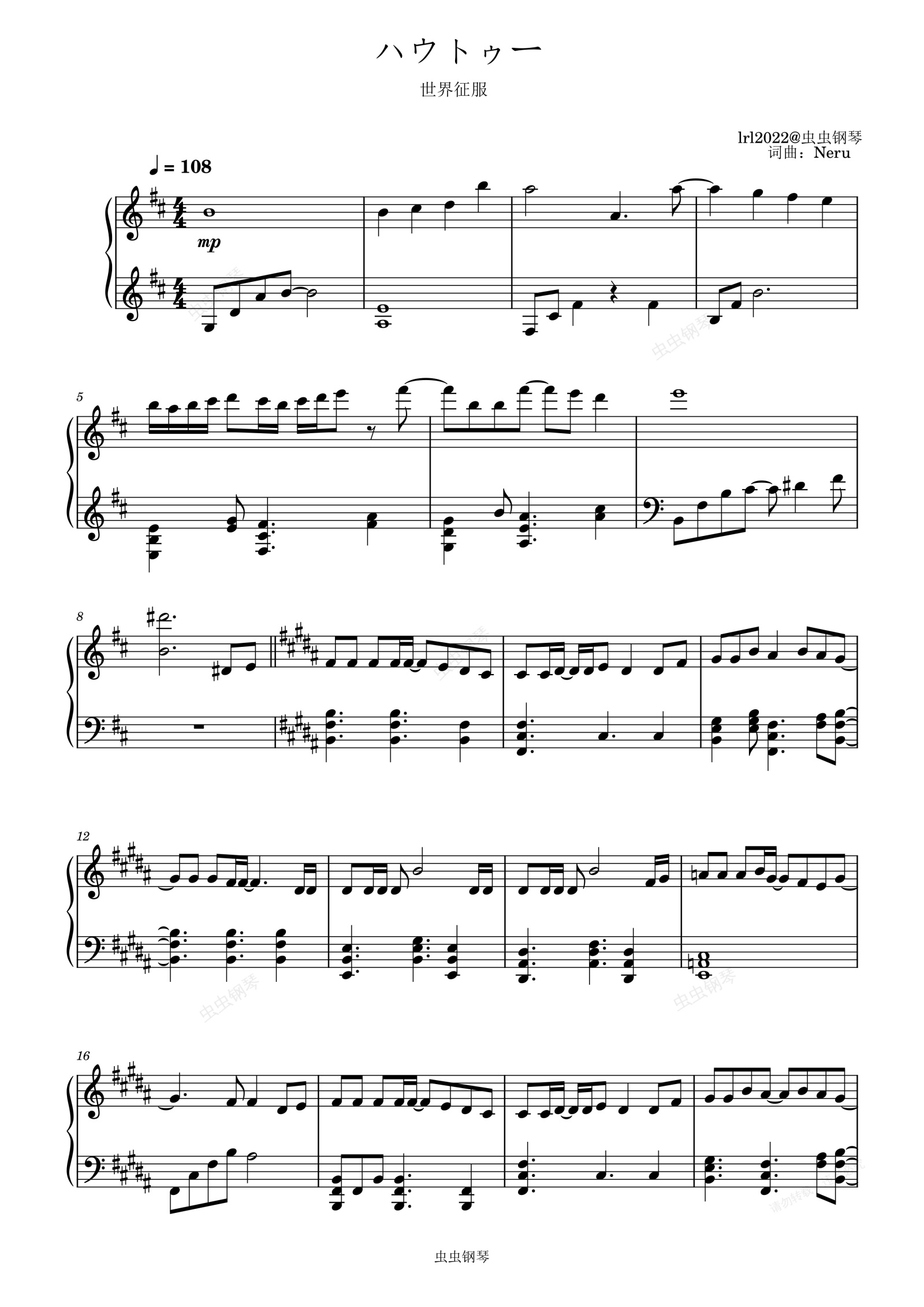 钢琴谱:ハウトゥー世界征服-钢琴谱-独奏版