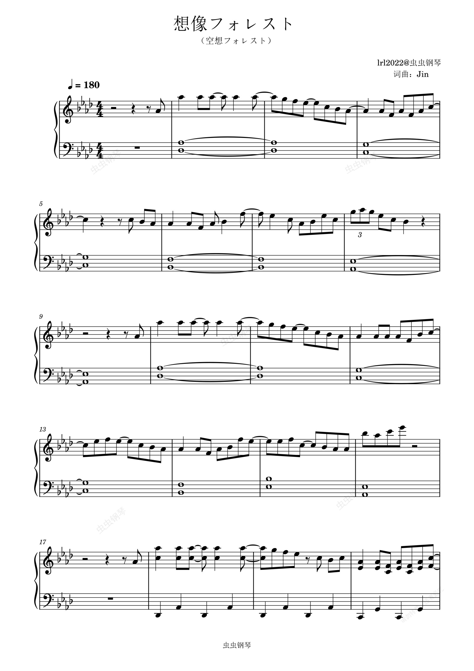 钢琴谱:想像フォレスト-空想フォレスト-《空想森林》-钢琴谱-独奏版