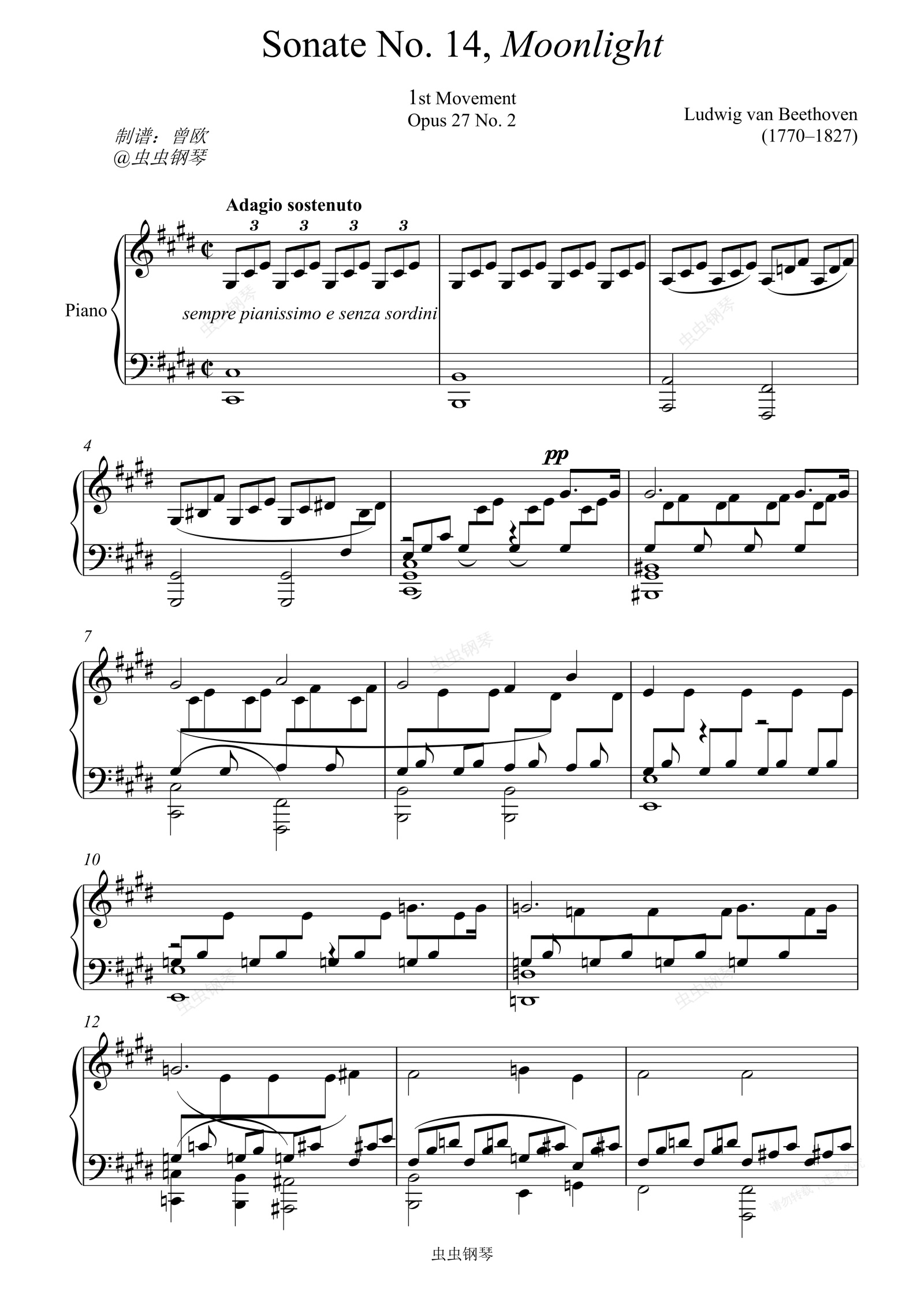 贝多芬月光奏鸣曲第一乐章