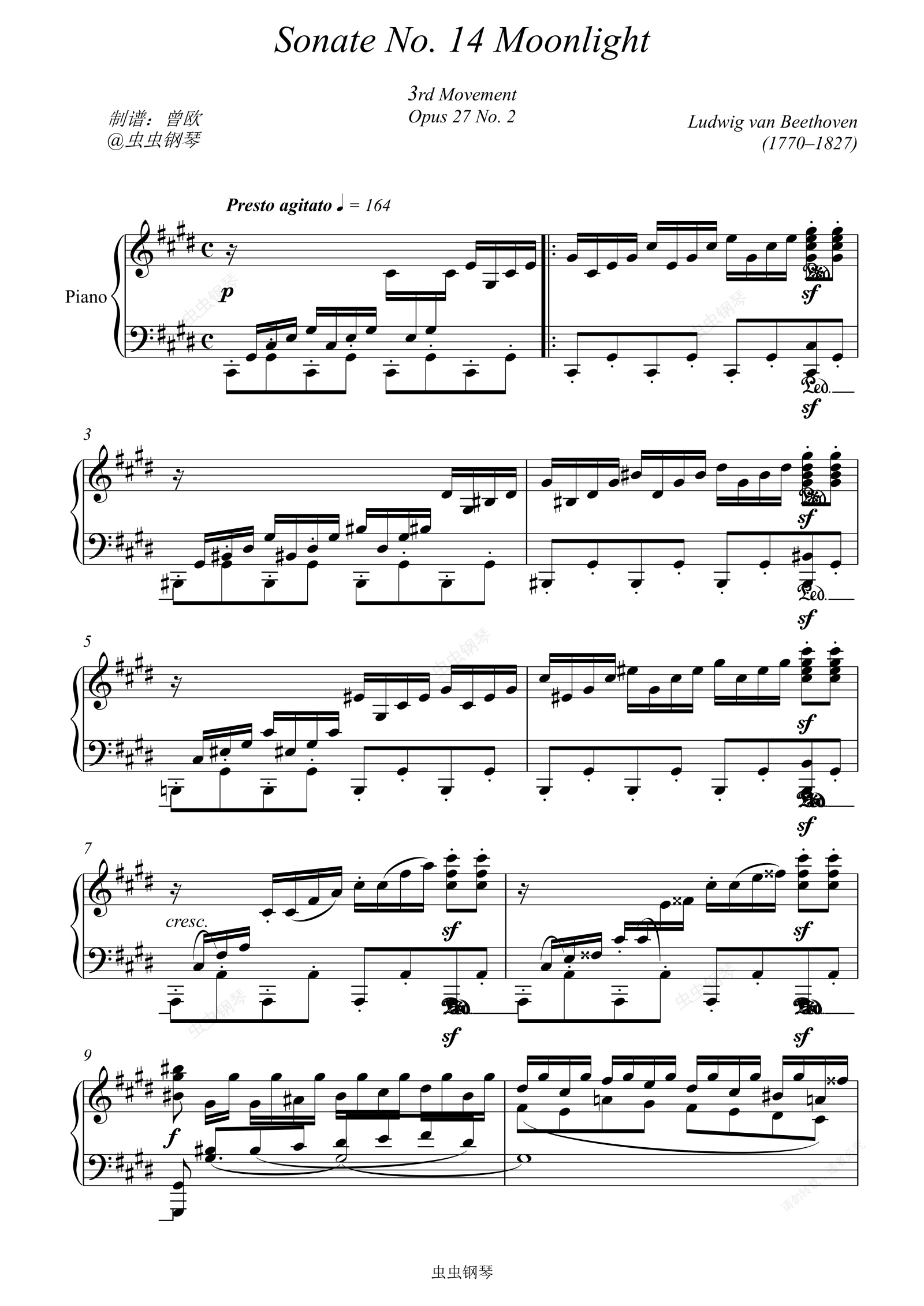 钢琴谱:贝多芬月光奏鸣曲第三乐章
