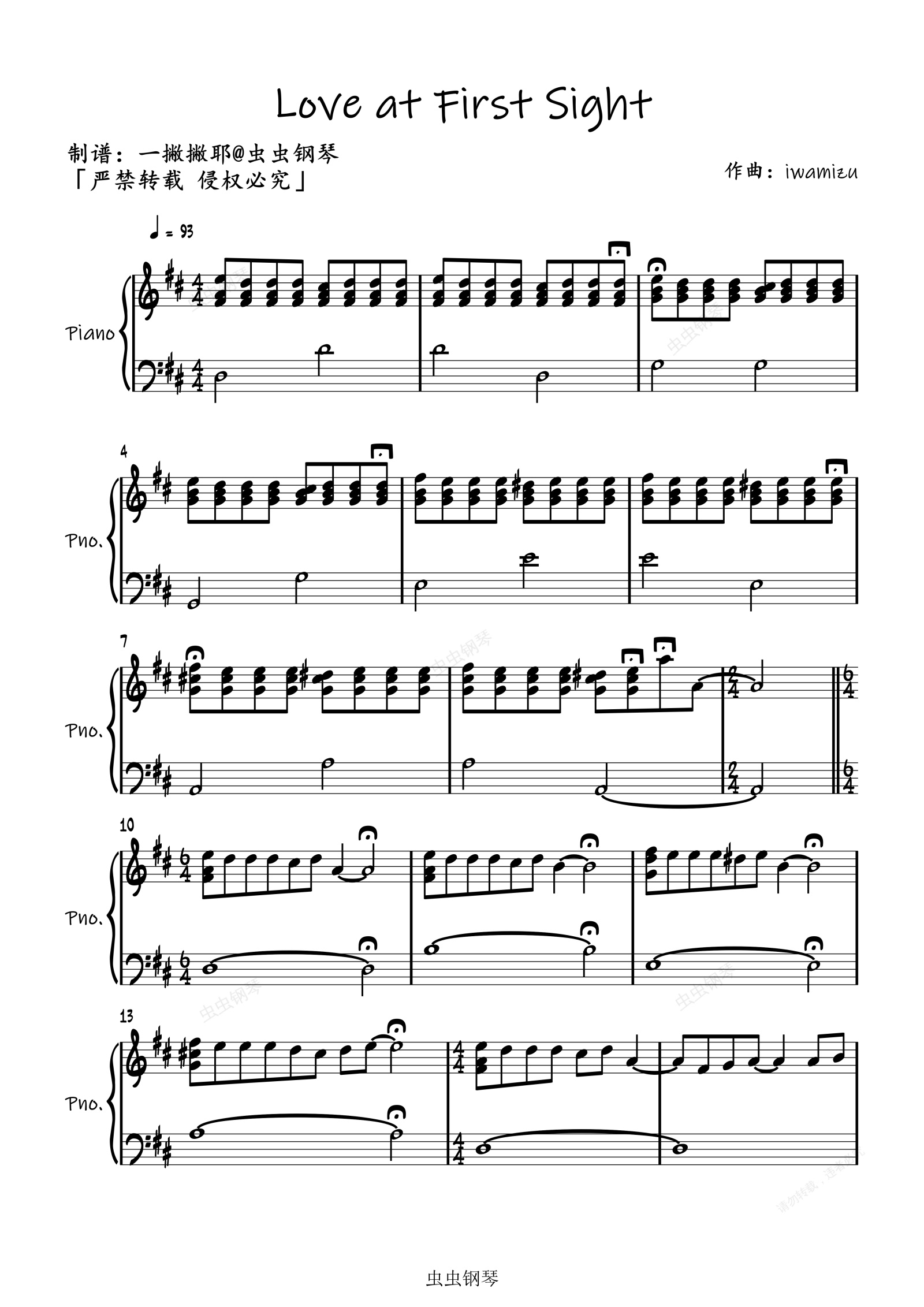 钢琴谱:《Love At First Sight》iwamizu「一撇撇耶」