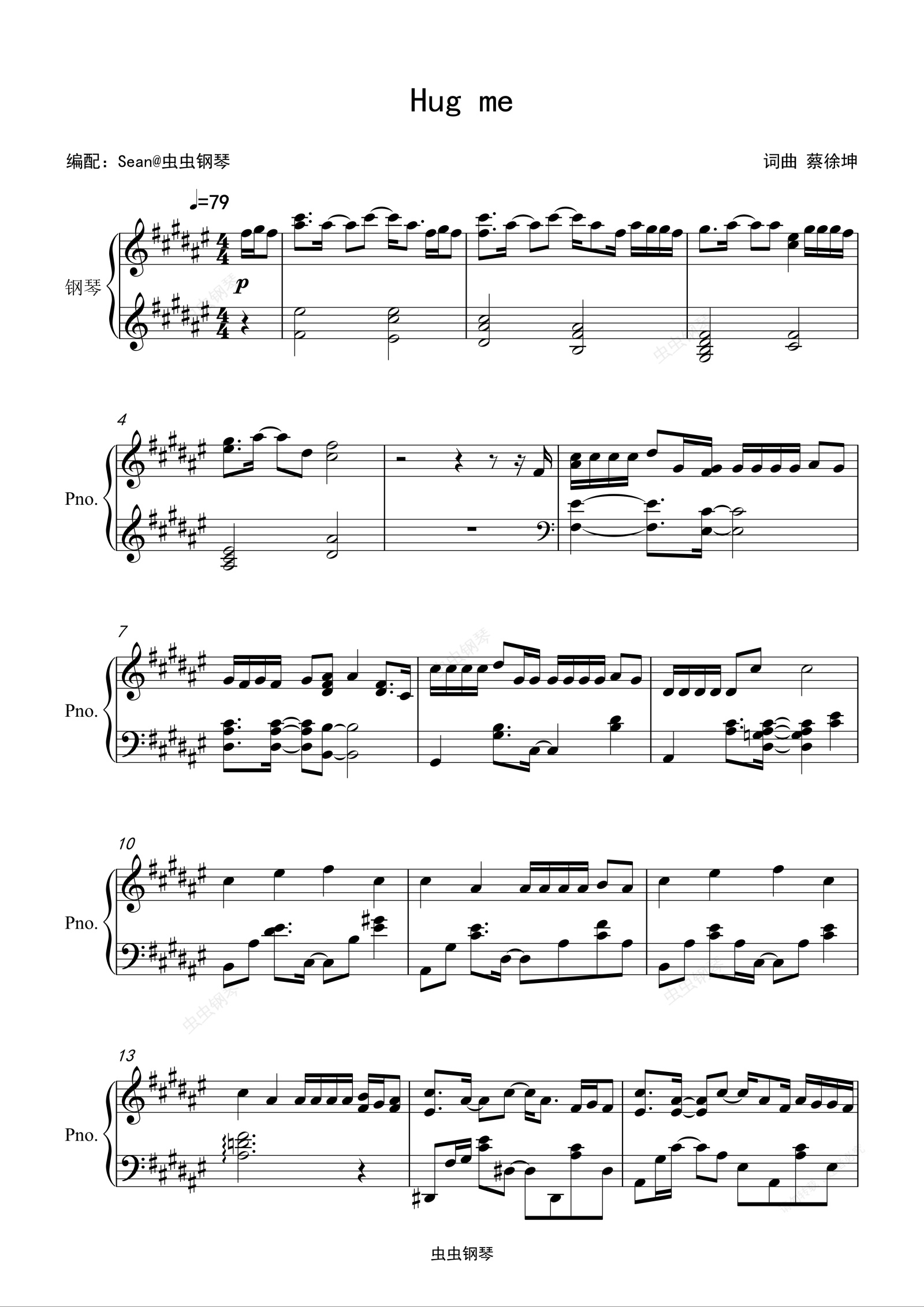钢琴谱:蔡徐坤《Hug me》高度还原版-Sean编配