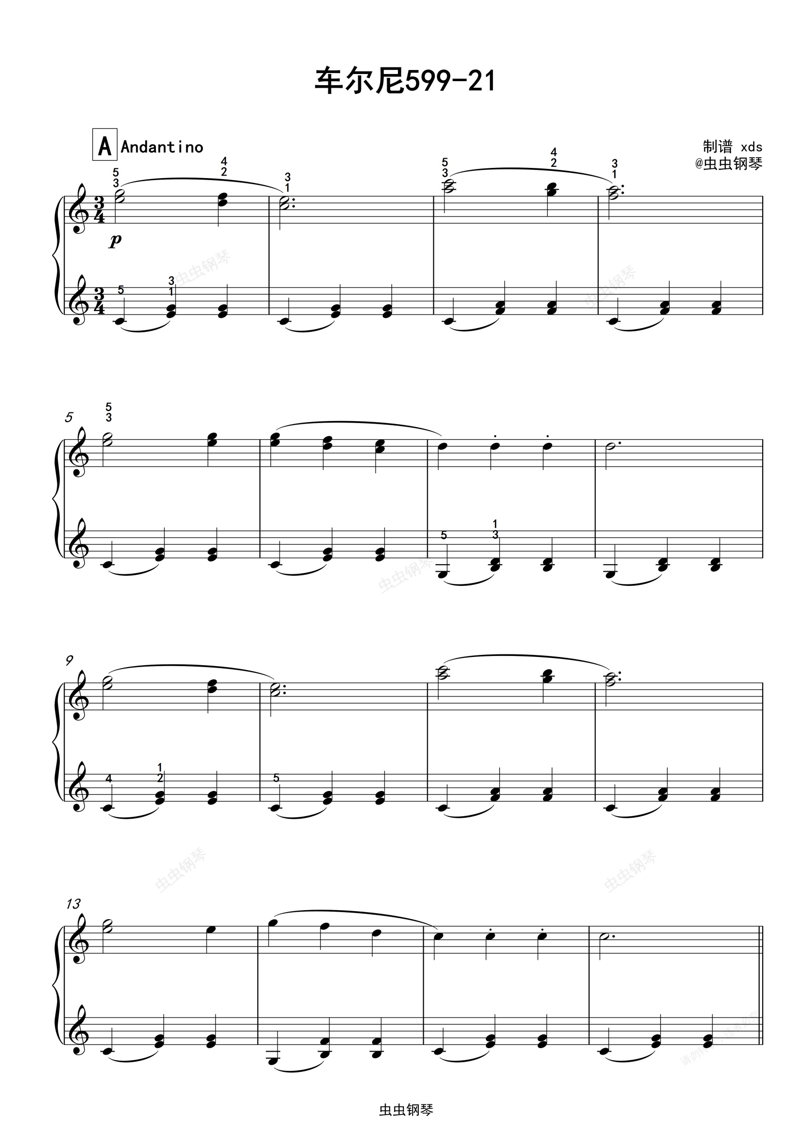 训练要点:此曲左手半分解和弦的序列与第 19 首大致相同,在音乐幅度上按比例扩大一倍;注意奏出圆舞曲基本节奏型“强弱弱”效果,每小节都要“落、提、弹”式,重音在第一拍,下键略深些。右手大指移位在第4、12、20、24、26 小节等处,弹奏时要有把位移动的感觉,右手三度双音练习是一个重点,要突出高音,第26~27 小节之间连奏时可先抬起3指,保留1指后下4、2指。
