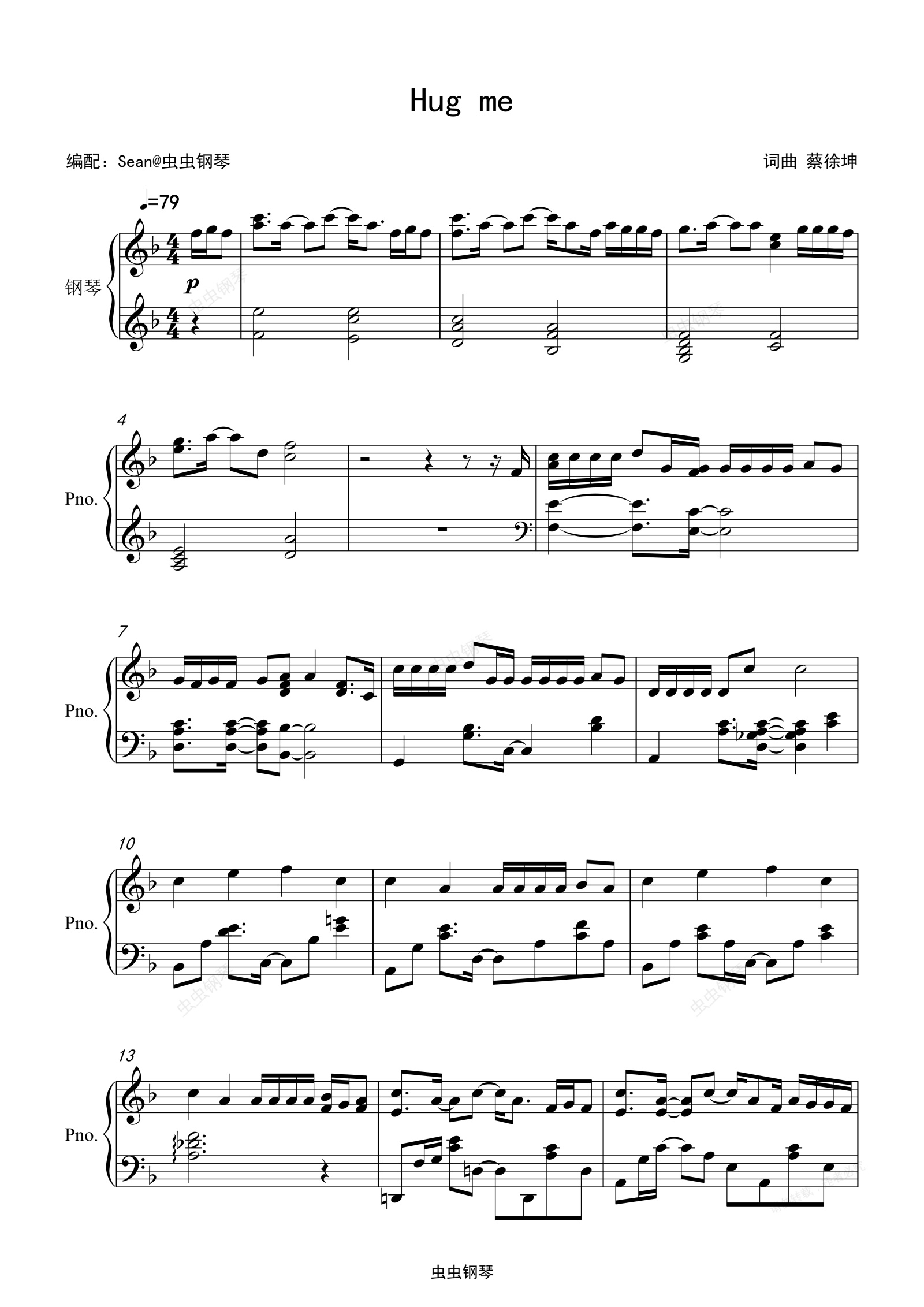 钢琴谱:蔡徐坤《Hug me》F大调版-Sean编配