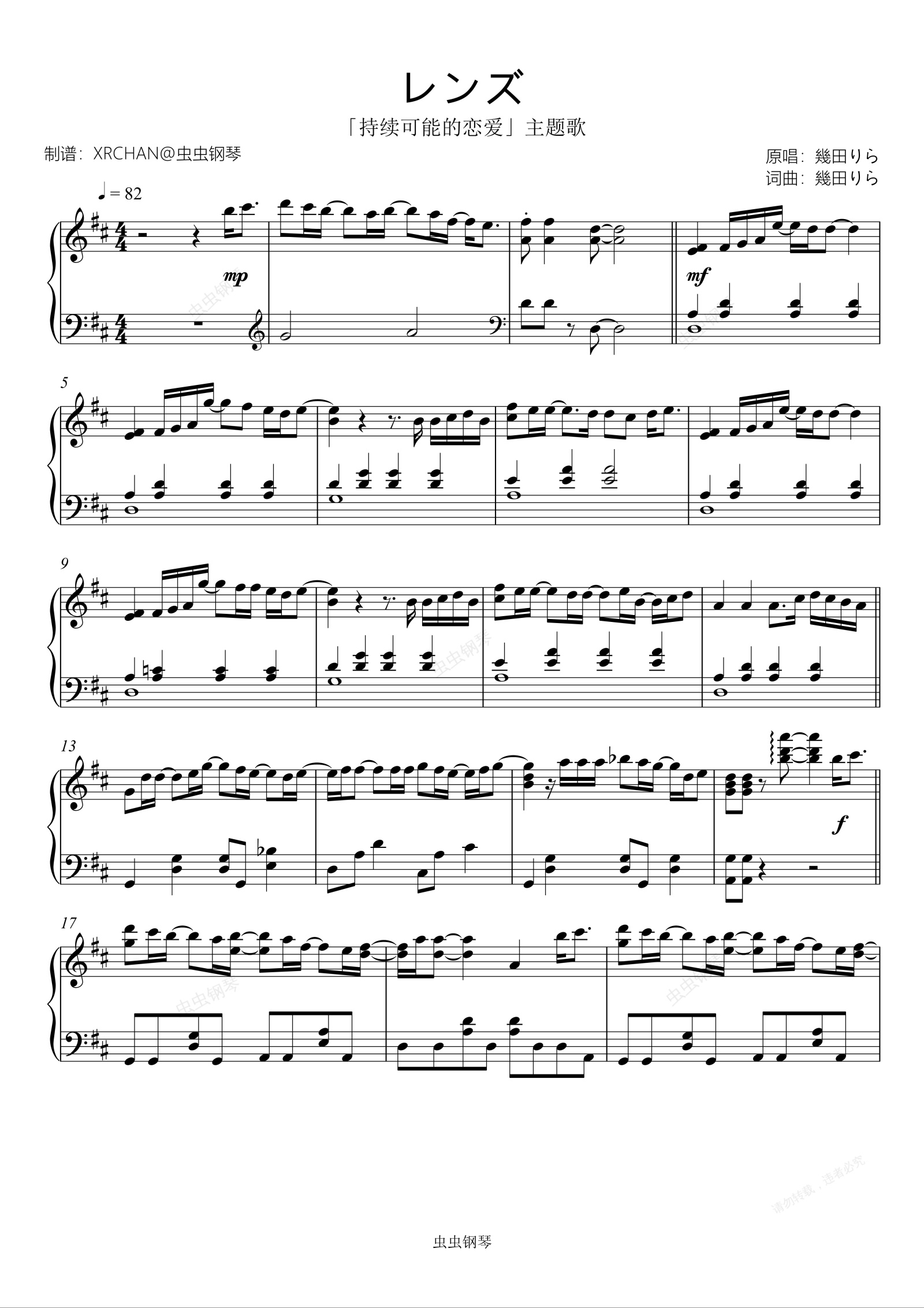 钢琴谱:「レンズ」《持续可能的恋爱》主题歌 初级