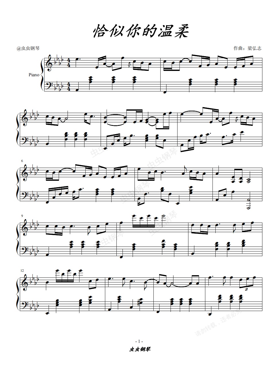 钢琴谱:【恰似你的温柔】独奏曲-邓丽君