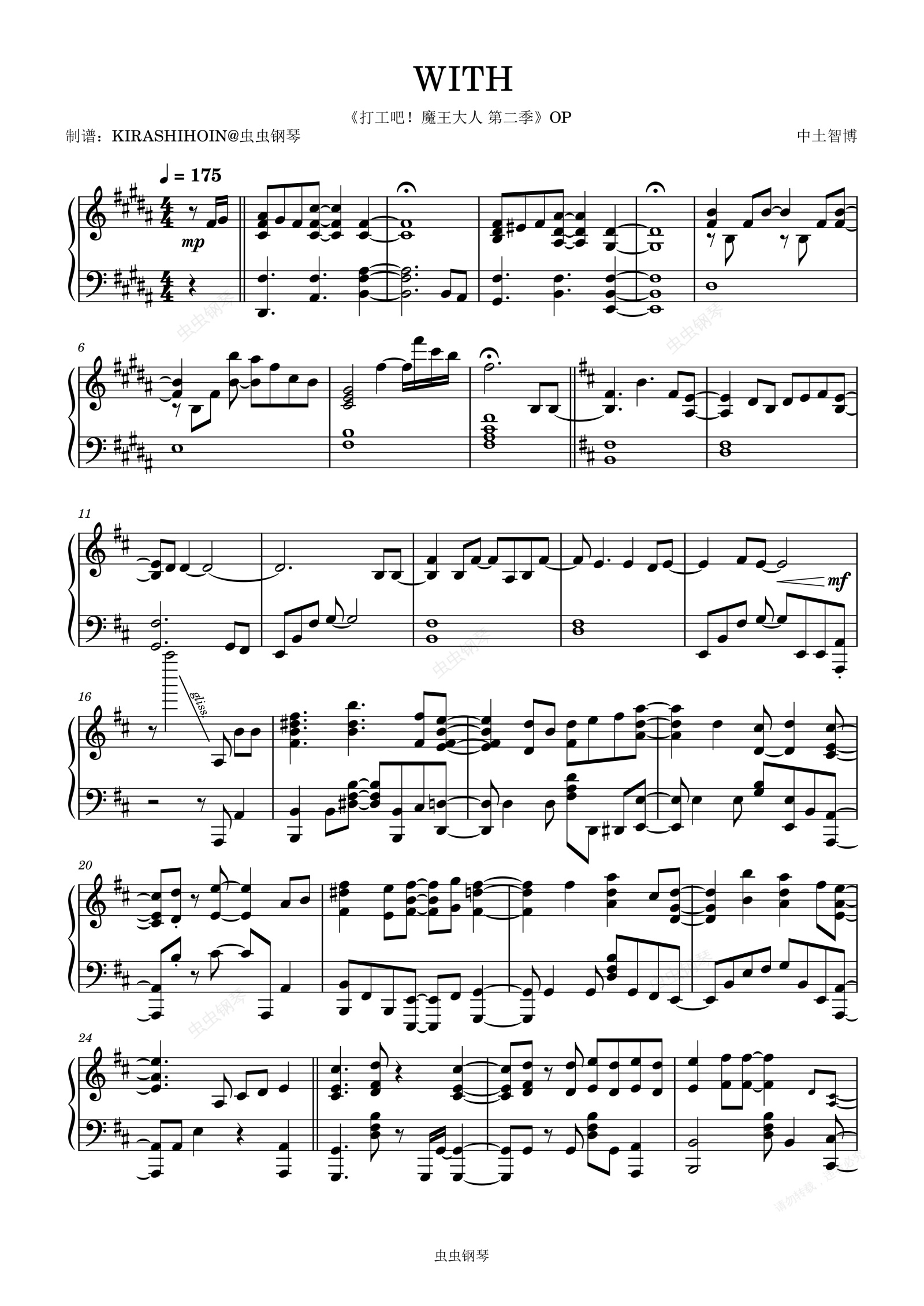 钢琴谱:WITH(《打工吧!魔王大人 第二季》OP/片头曲)- 栗林美奈实