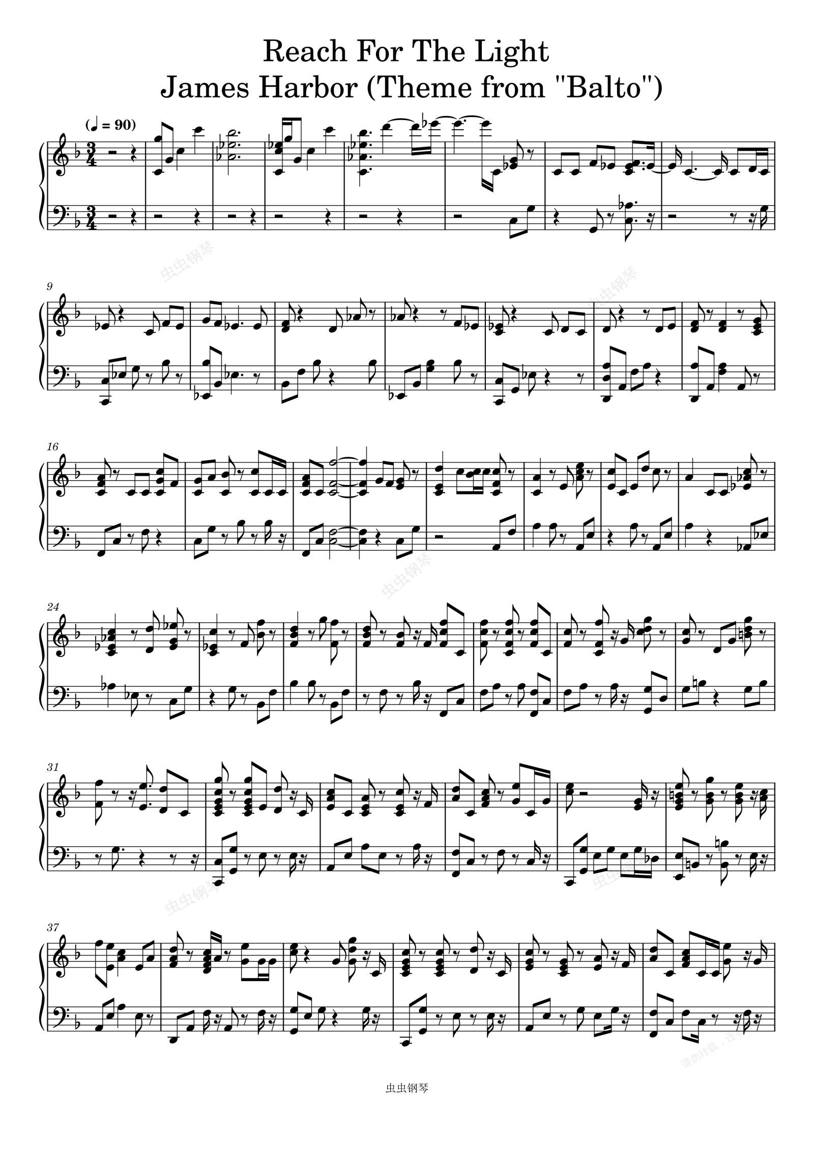 钢琴谱:小狗波图 电影-Reach For The Light - James Horner