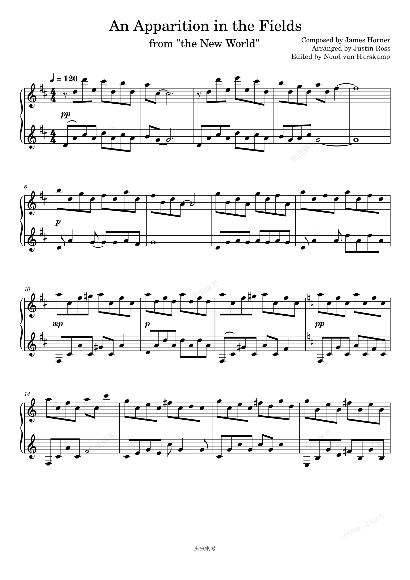 钢琴谱:新世界 电影-An Apparition in the Fields-James Horner