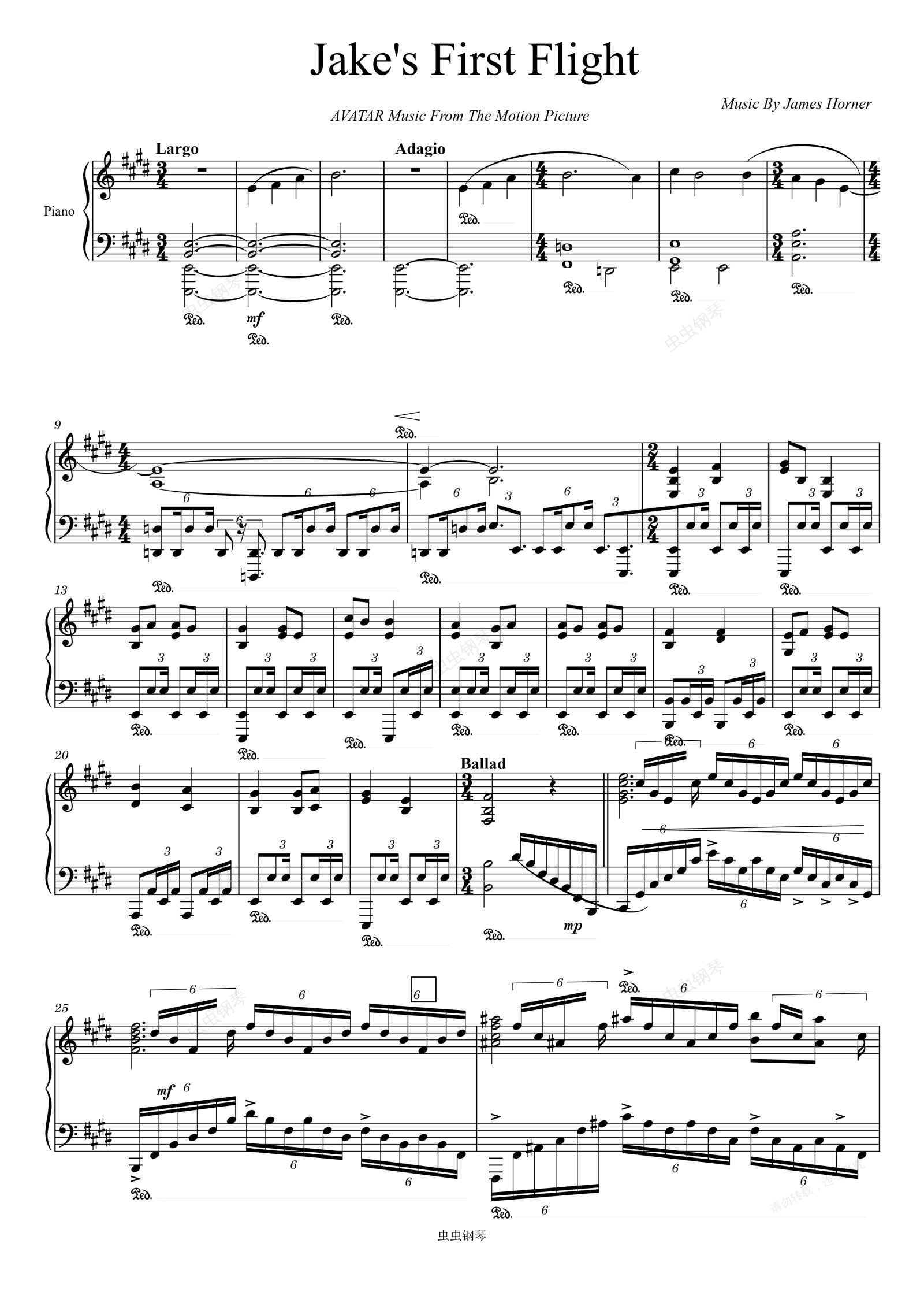 钢琴谱:阿凡达 电影-Jake's First Flight-James Horner