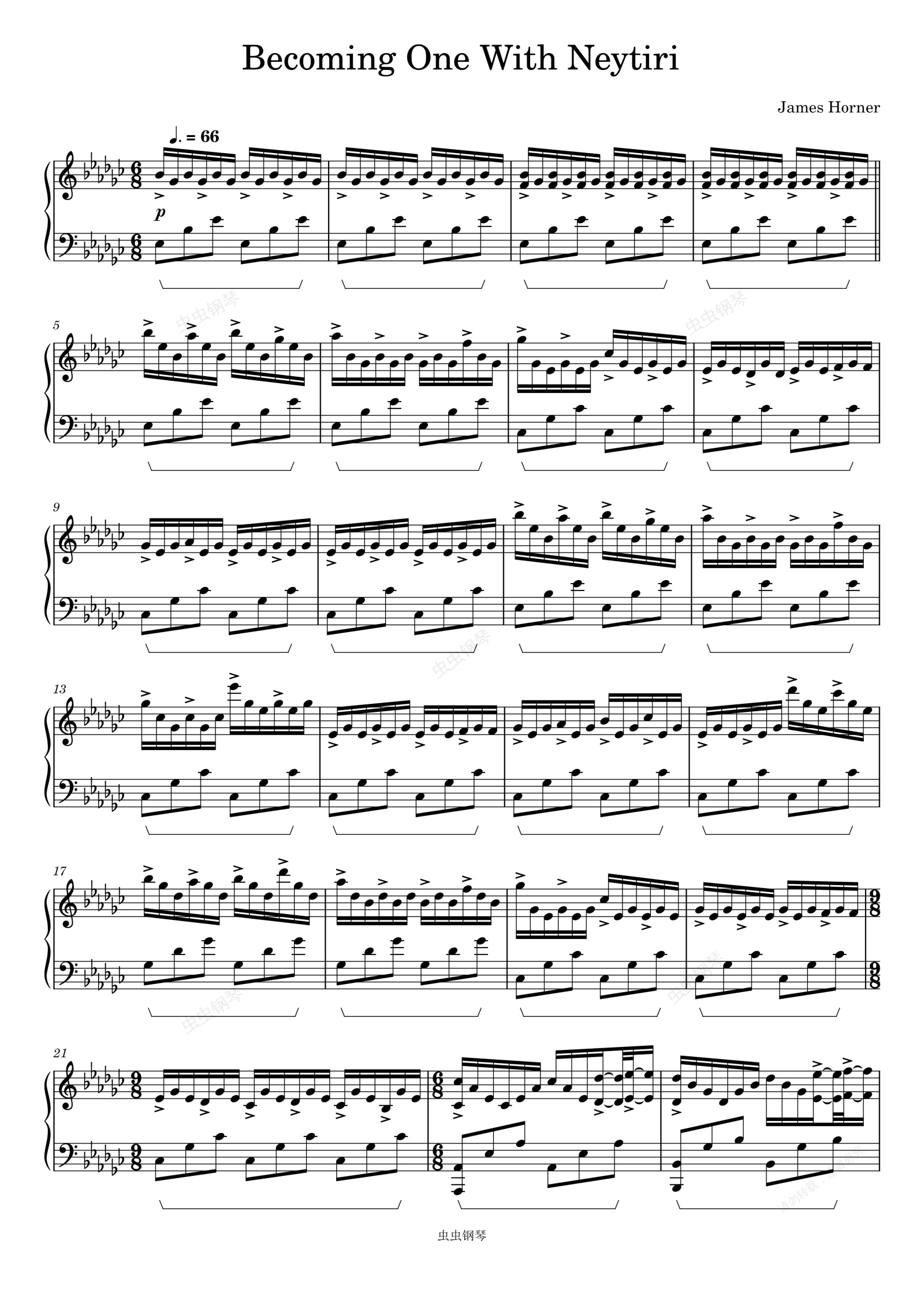 钢琴谱:阿凡达 电影-Becoming One With Neytiri -James Horner