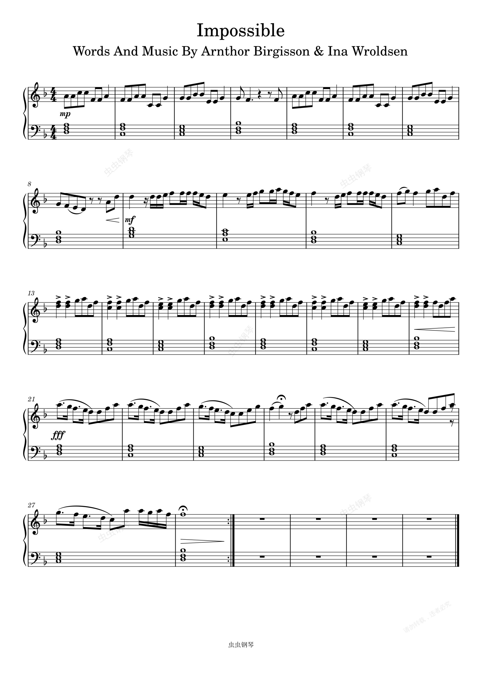 钢琴谱:Impossible-Ina Wroldsen